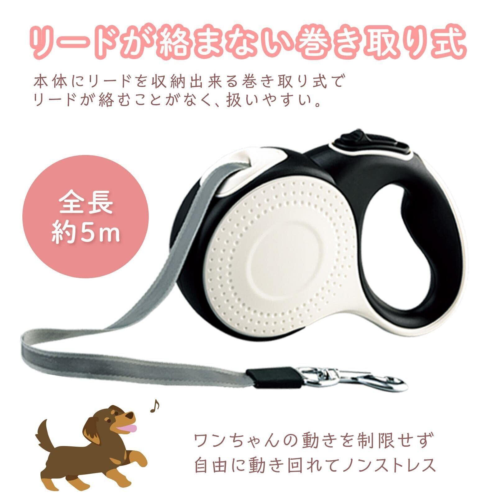 コモライフ 犬用 伸縮リード 5m (体重約20kgまで) リード 犬 散歩 ペット 小・中型犬 巻き取り式 反射テープ