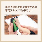 手形や足形を紙に押すための専用スタンプパッドです。インキは肌にやさしく、水洗いや濡れたティッシュ等で簡単に洗い落とせます。強く握った子供の手でも、開いてインキが塗布できる「傾斜型ヒンジ」構造を採用。にじみが少なく色鮮やかな発色で、作品がキレイに仕上がります。