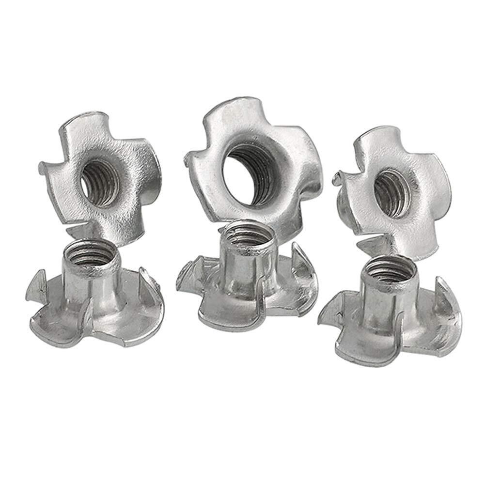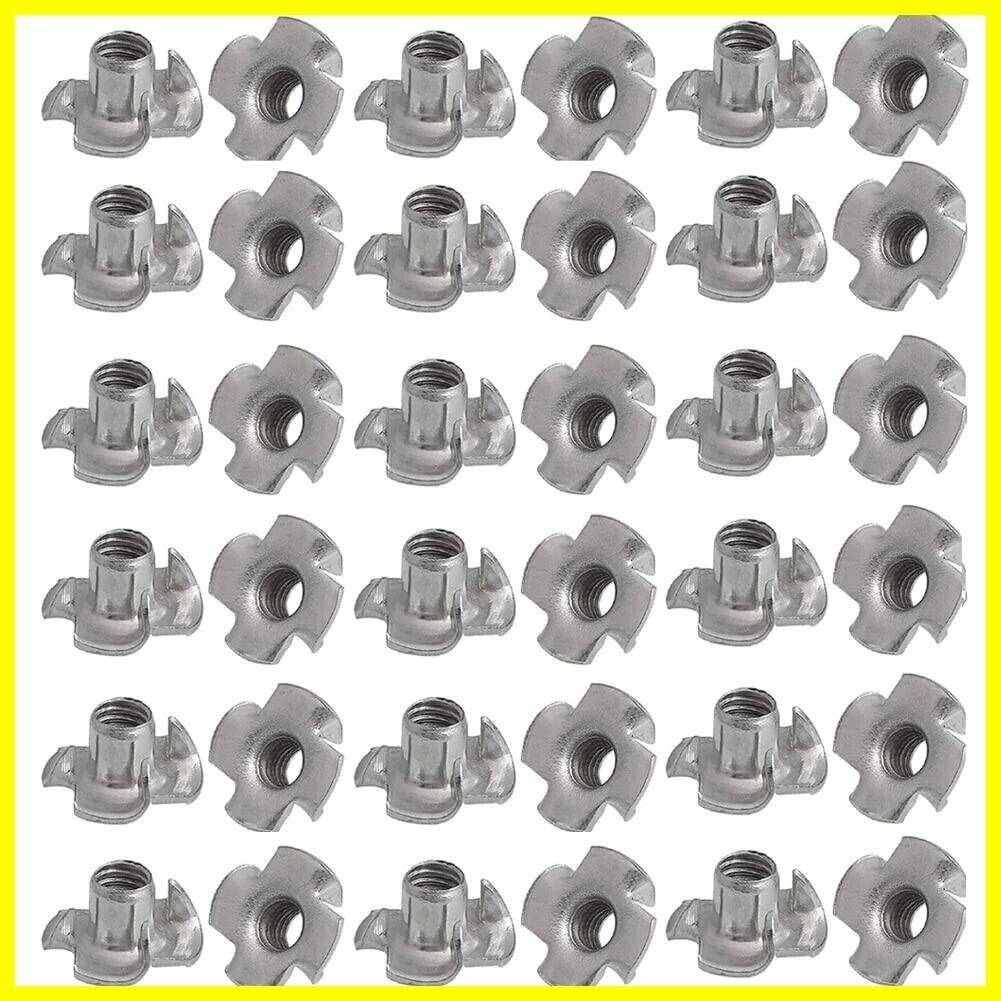 Bestgle 四爪ナット Tナット爪付きTナット100個入りm6ナット爪付きナット 亜鉛メッキナット ブラインドインサート 爪付き Tナット クライミングホールド 木壁取り付け用 爪付きナット 木工用 埋め込み ナット 木製家具用汎用 耐熱 耐腐食 高硬度 シルバー