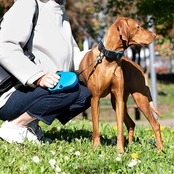 ワンちゃんの動きに合わせて自在に調節できる伸縮リード。