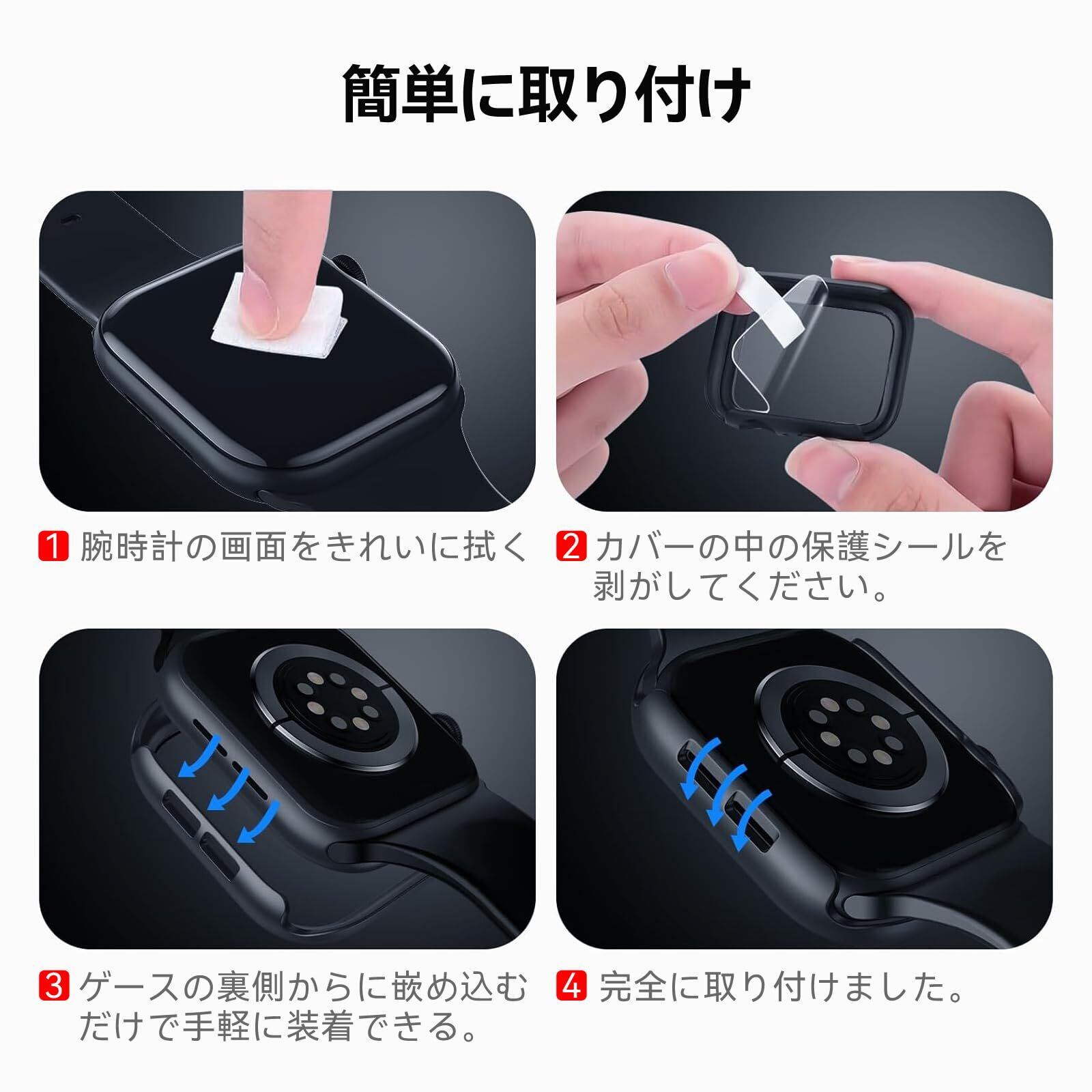 【全面保護·9Hの硬度】強化ガラスフィルムとPCフレームまた防水リングの三重構造仕組みを採用し、最高レベルの9H硬度、 盛り上がったエッジガードが、スクリーンを硬い面にぶつけないように保護します、Apple Watch保護機能を更にアップ!