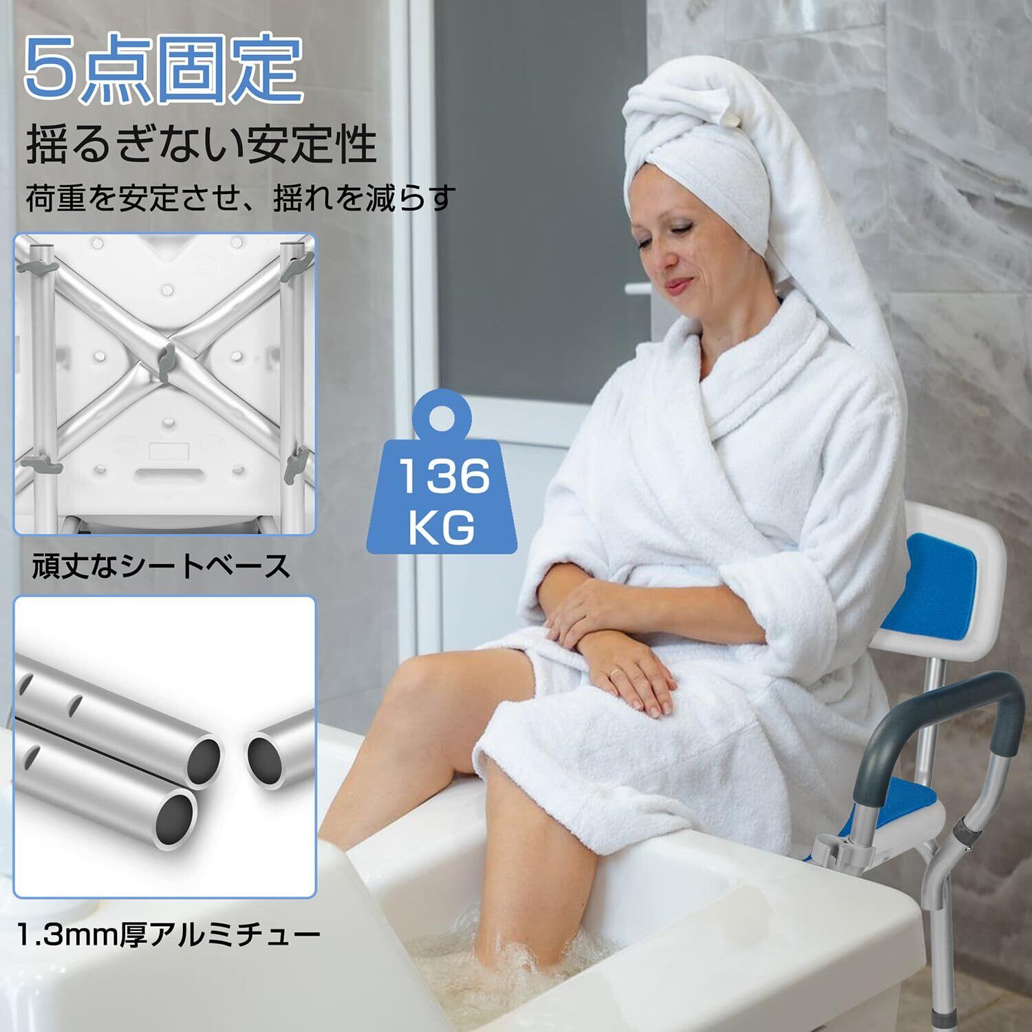大吸盤 シャワーチェア お風呂椅子 介護用 6段階高さ調節可能 背もたれ付き 手すり 取り外し可能 アルミ合金フレーム 軽量 丈夫 シャワー用 介護ダイニングチェア 耐荷重136kg 日本語説明書付き