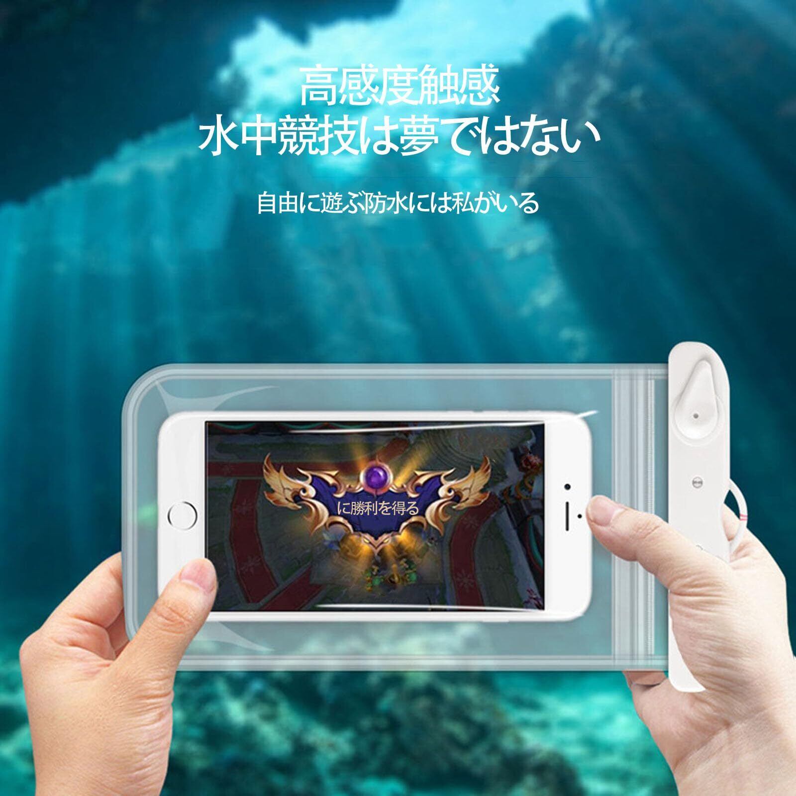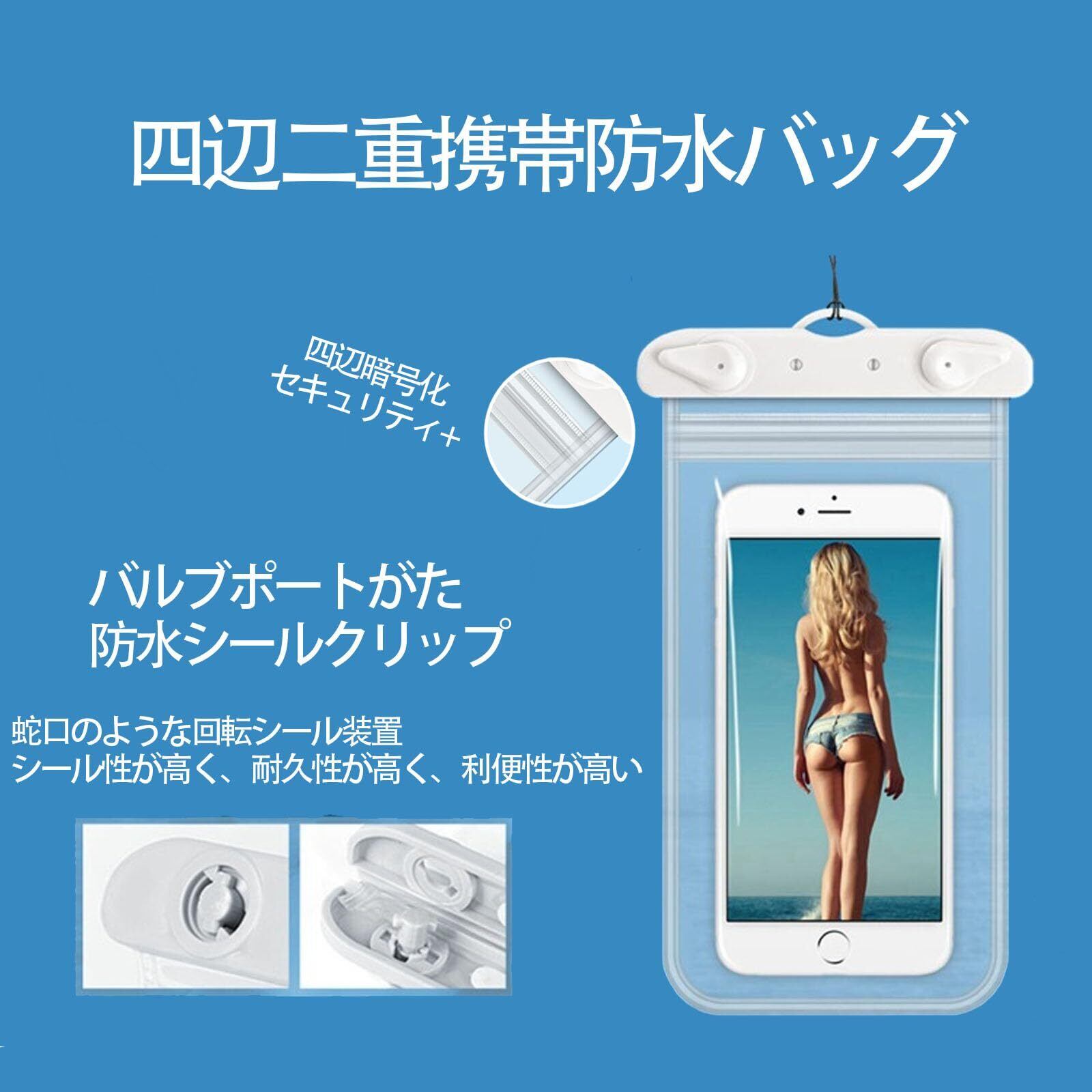 【多機能&最大の7.2インチ対応】携帯防水ケースは撮影、タッチ操作、通話などの操作もできます水泳、潜水、海辺での撮影、お風呂、スキー、雪遊び、温泉で音楽や動画を楽しみたい時、料理を作りながら携帯を操作したい時、野外ライブ、釣りなど様々なアウトドアとレジャーの場合に役立ちますスマホ以外に、パスポート、鍵、カード、現金なども収納できます。
