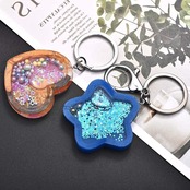 【作り方法】①液入れカップにUVレジン液と着色剤を入れてよく混ぜる。②着色したレジン液をシリコンモールドに入れ、UVライトを1~2分照射してレジン液を固める。③シートをキーホルダーに貼り付け、完成!