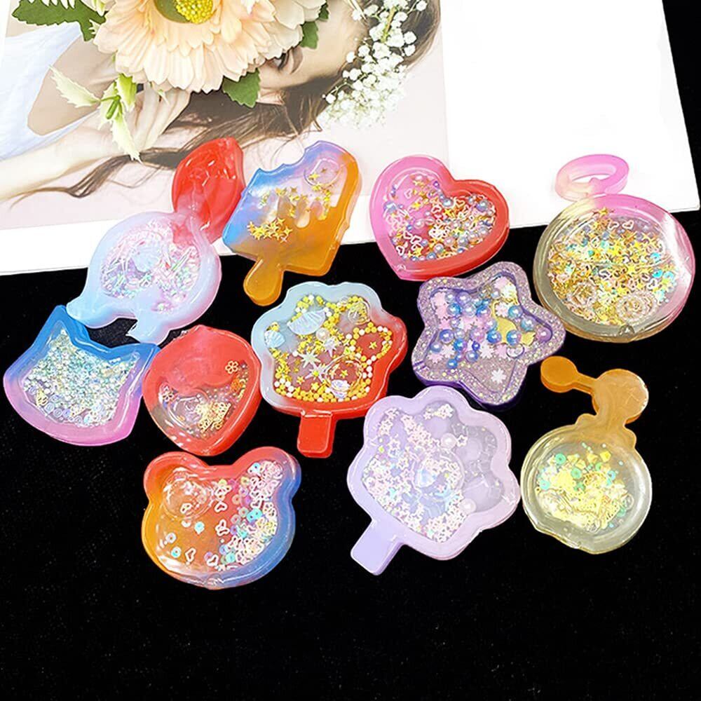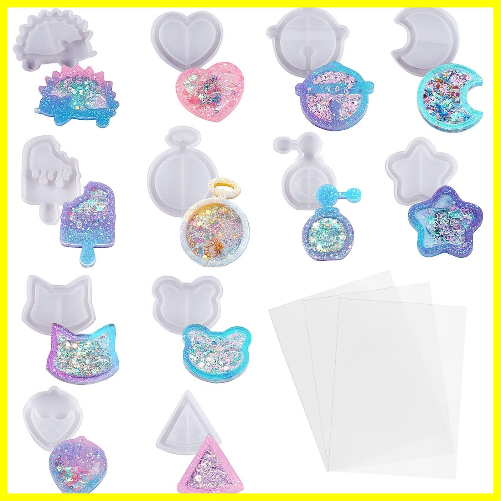 シリコンモールド 流れ砂型 12個セット PPシート3枚付き レジン型 シェイカーモールド ハート ソフトモールド 中身がシャカシャカ動く DIY手作り かわいい ペンダント アクセサリー キーホルダー レジン モールド 装飾 再利用可能