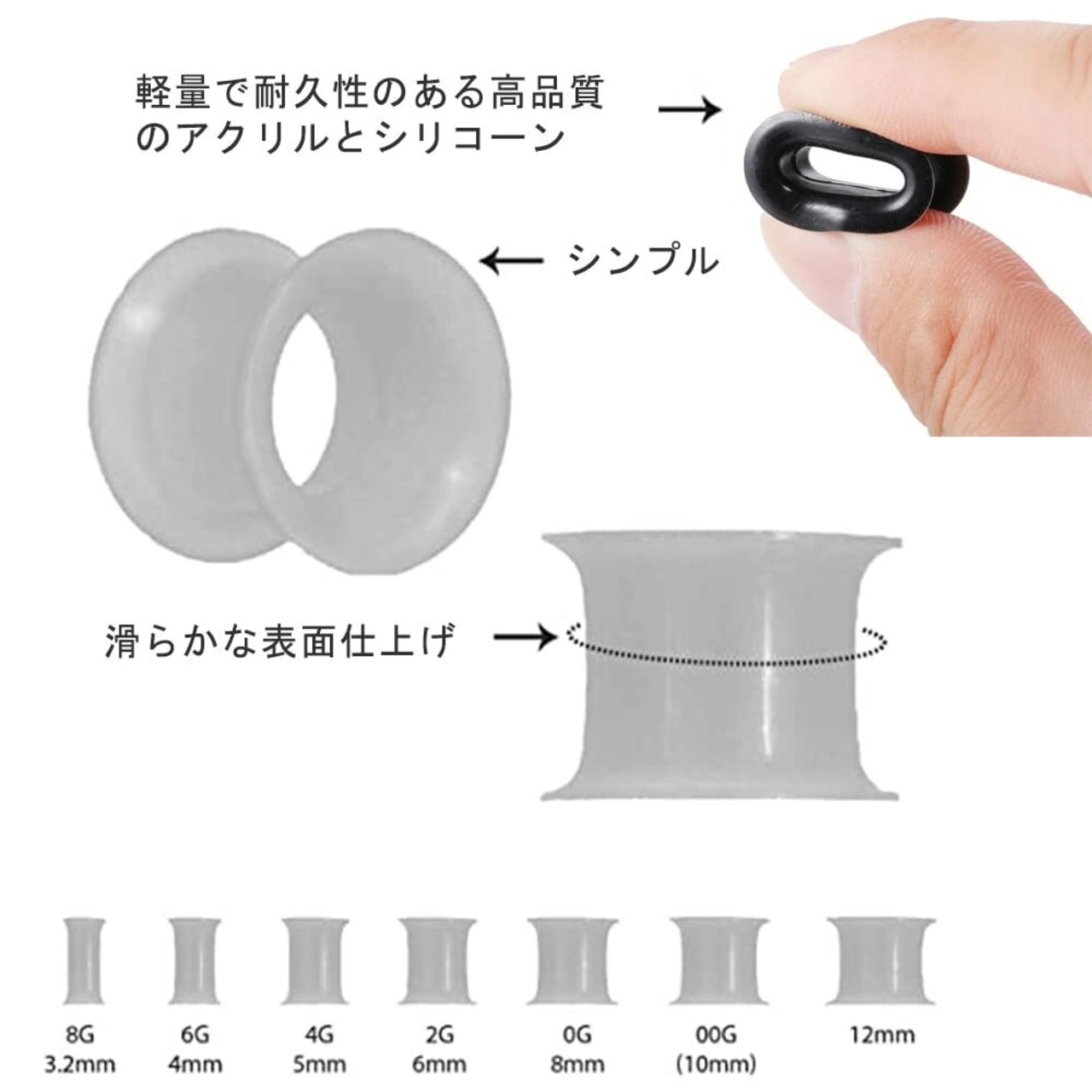 【パッケージ内容】個数:50個;9サイズセット:00G-10mm、0G-8mm、2G-6mm、4G-5mm、6G-4mm、8G-3.2mm、10G-2.4mm、12G-2mm、14G-1.6mm。