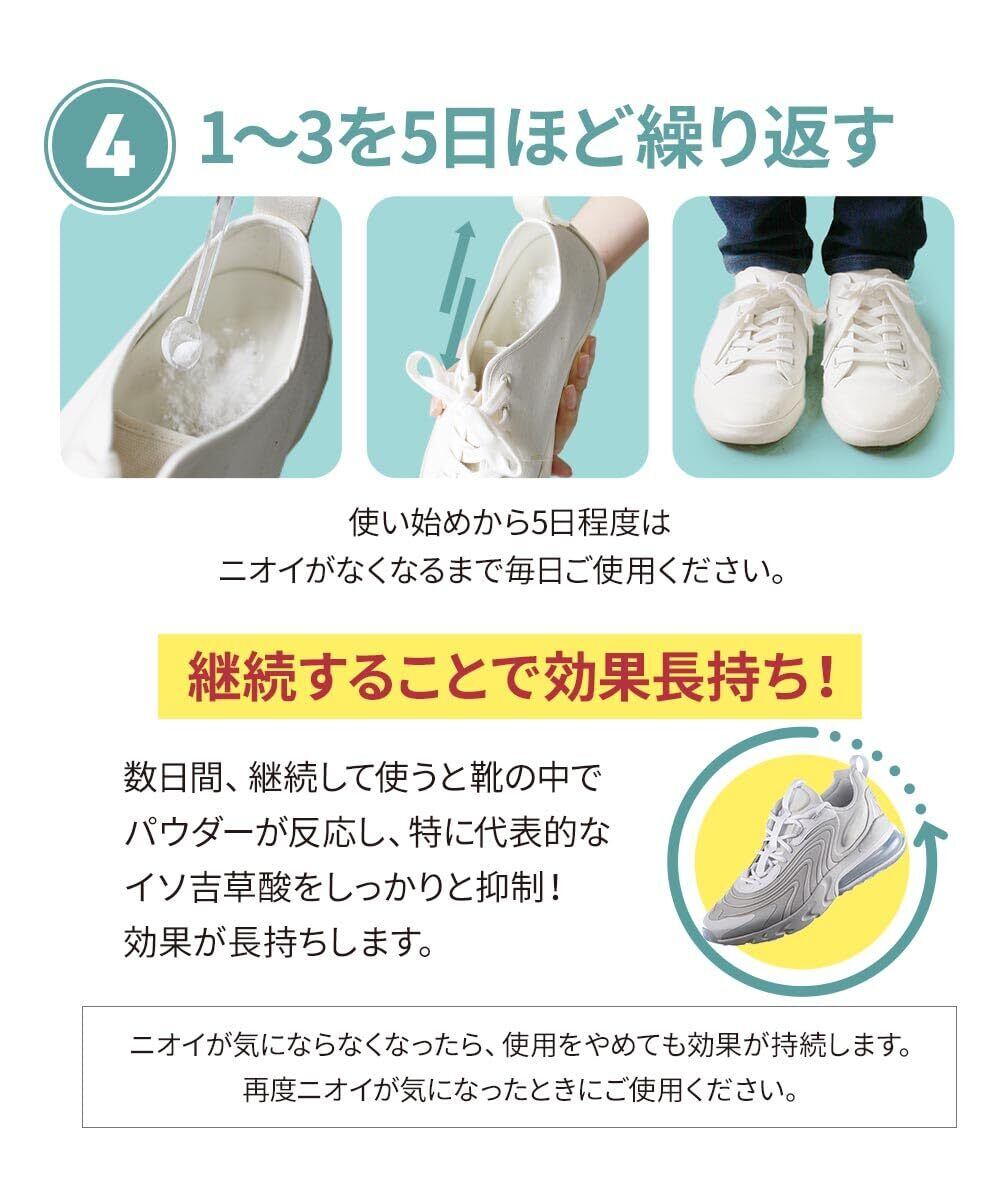 【使い方は簡単】nino(ニーノ)靴の消臭パウダーなら、靴に入れて履くだけ!入れてすぐに履いていただけます。使い始めから5日程度はニオイがなくなるまで毎日ご使用ください。継続して使用することで、靴の中で汗の水分とパウダーが反応し、効果が長続きします。