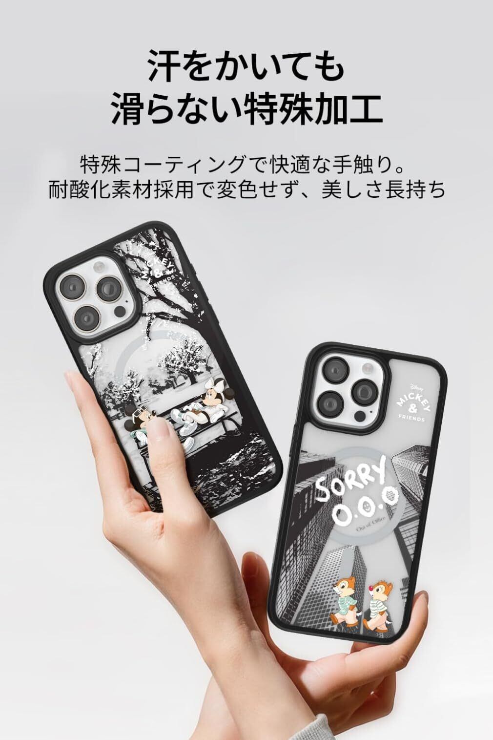 【ミッキー&ミニー】Belkin iPhone 15用ケース MagSafe対応 マグネット搭載 薄型 超耐衝撃 UV耐性 黄ばみ防止 ソフトTPU ブラック MSA016qcBS-DY