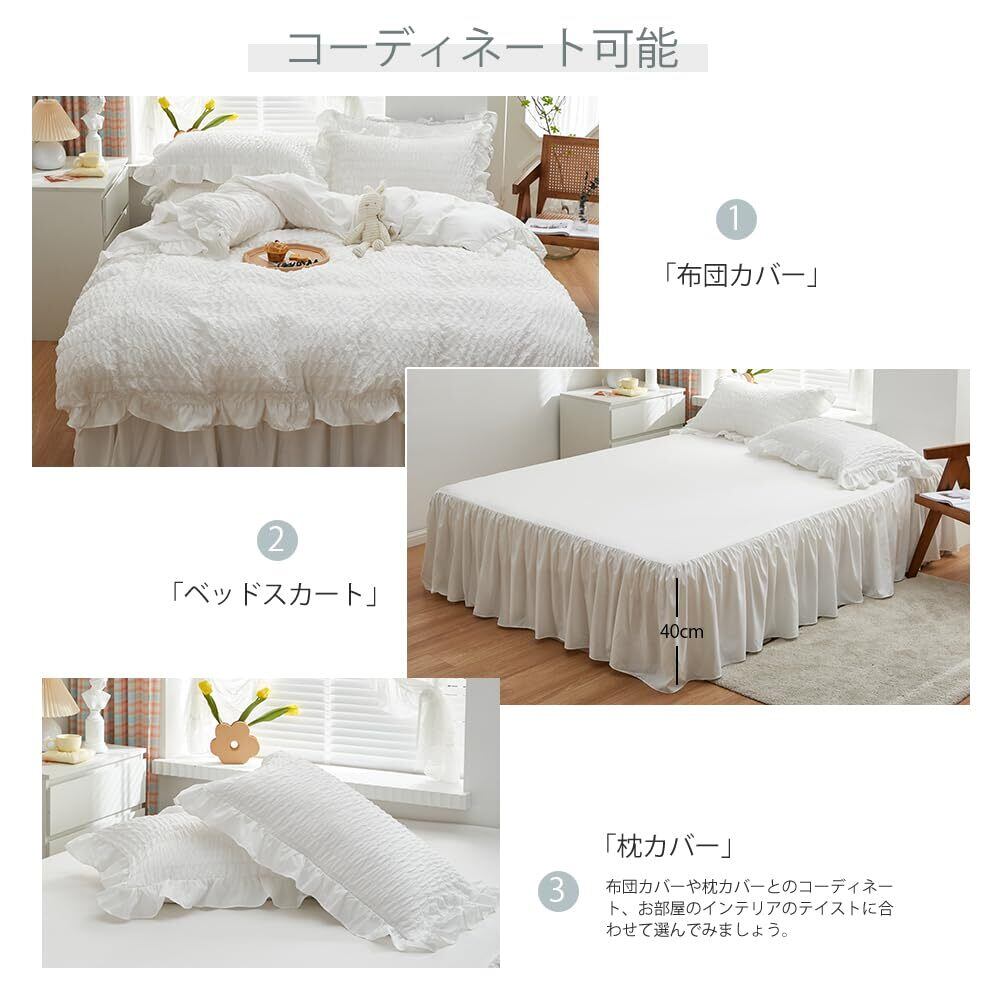 布団カバー 3点セット 4点セット フリル付き布団カバー 寝具カバー 洋式・和式兼用 ベッドカバー 掛け布団カバー ボックスシーツ 枕カバー シーツカバー 肌に優しい ピーチスキン加工 北欧風 四季通用 (シアサッカーホワイト, 3点セット*シングル)
