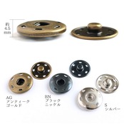 縫い付けタイプの大きめサイズのスナップボタン。真鍮製のため軽いです。