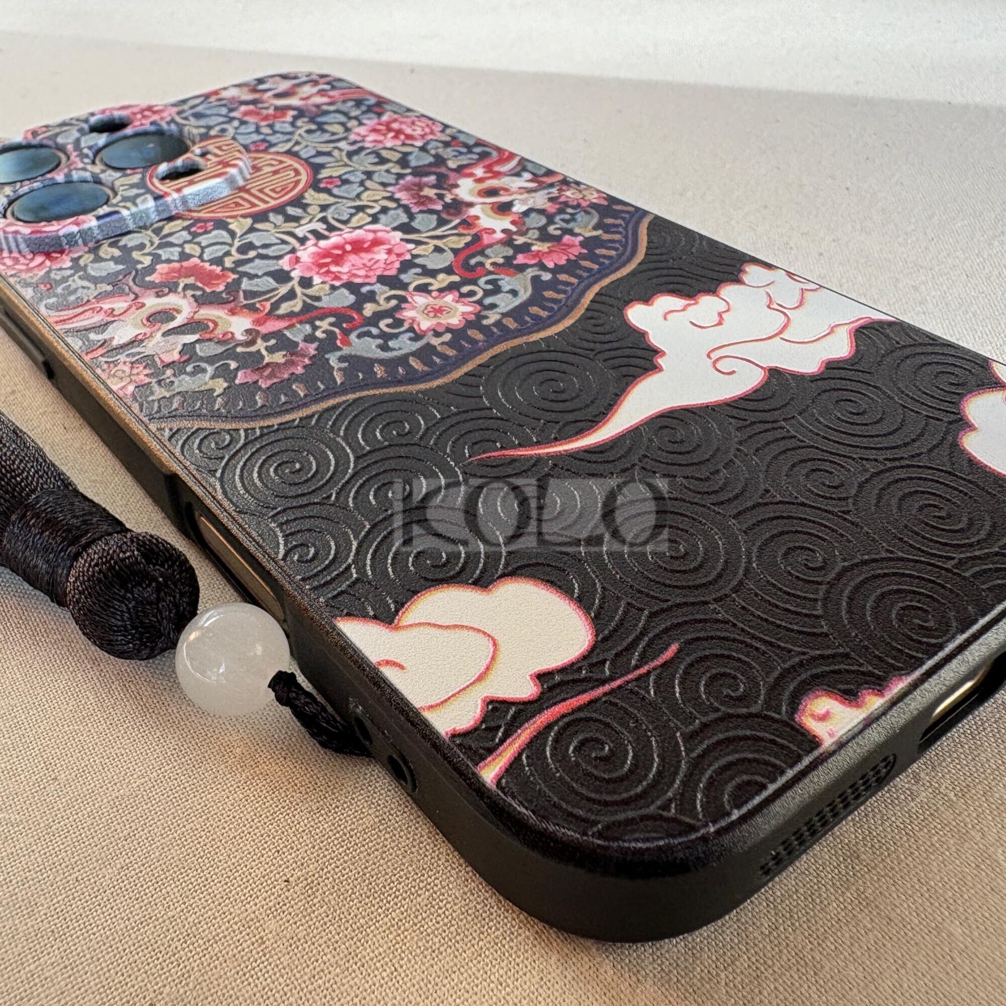 KOLO【黒盆花】iPhone対応 16 Pro Max スマホケース 中国風 中華風 シノワズリ カバー(黒) iPhone16 Pro Max