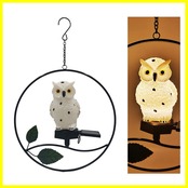 ガーデンライトは、可愛いふくろうのLEDランタン。点灯するとリングの中のフクロウが優しく光ります。防水、ソーラー充電、電気や電池は不要でエコ。柔らなの光が、庭、ガーデン、屋外を優しく照らします。