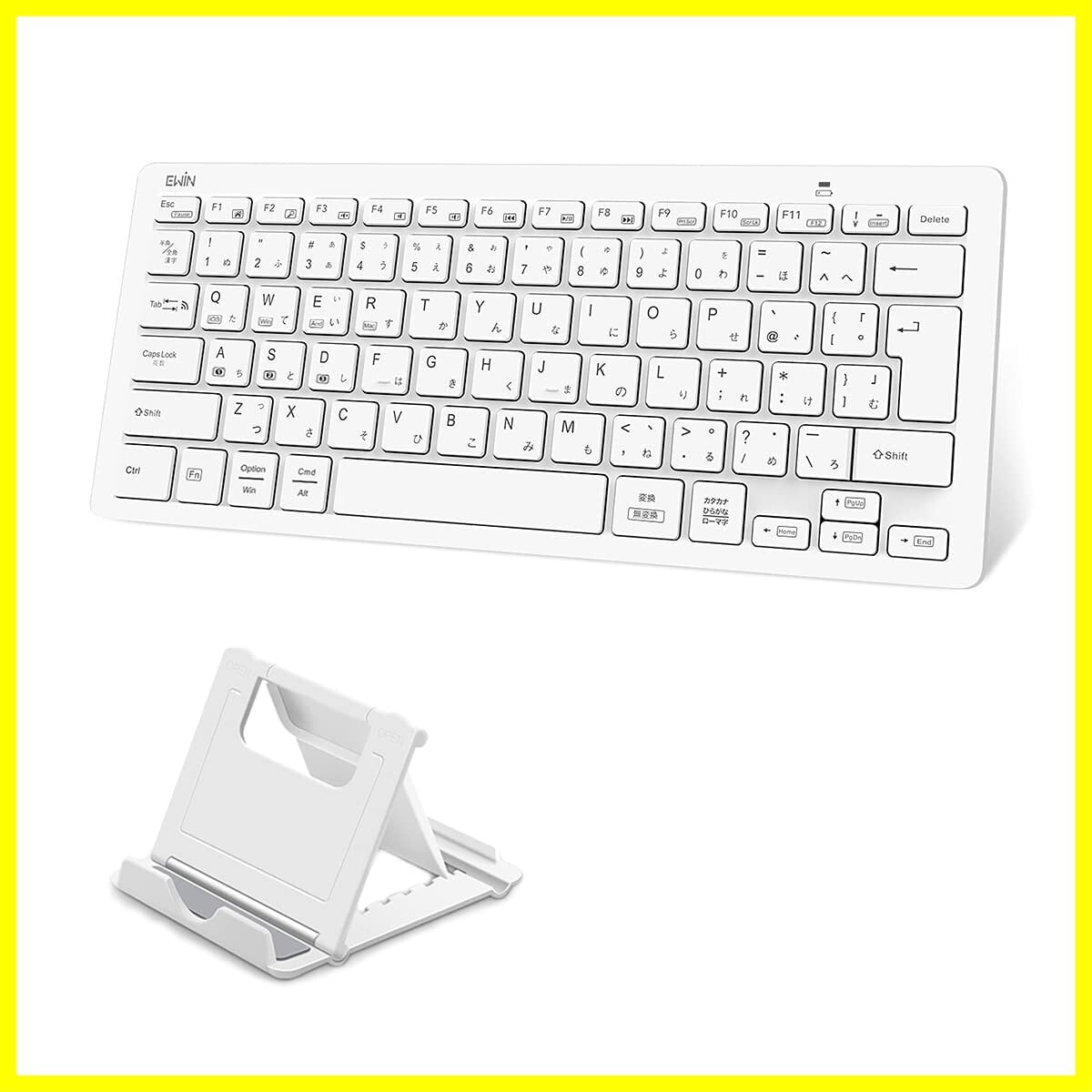Ewin Bluetoothキーボード 日本語配列 マルチペアリング 3台同時接続 タブレット スマホ アイパッド ノート PC用 iOS Android Windows Mac対応 スタンド付き 在宅勤務 リモートワーク用 かな入力 ワイヤレス キーボード ホワイト