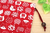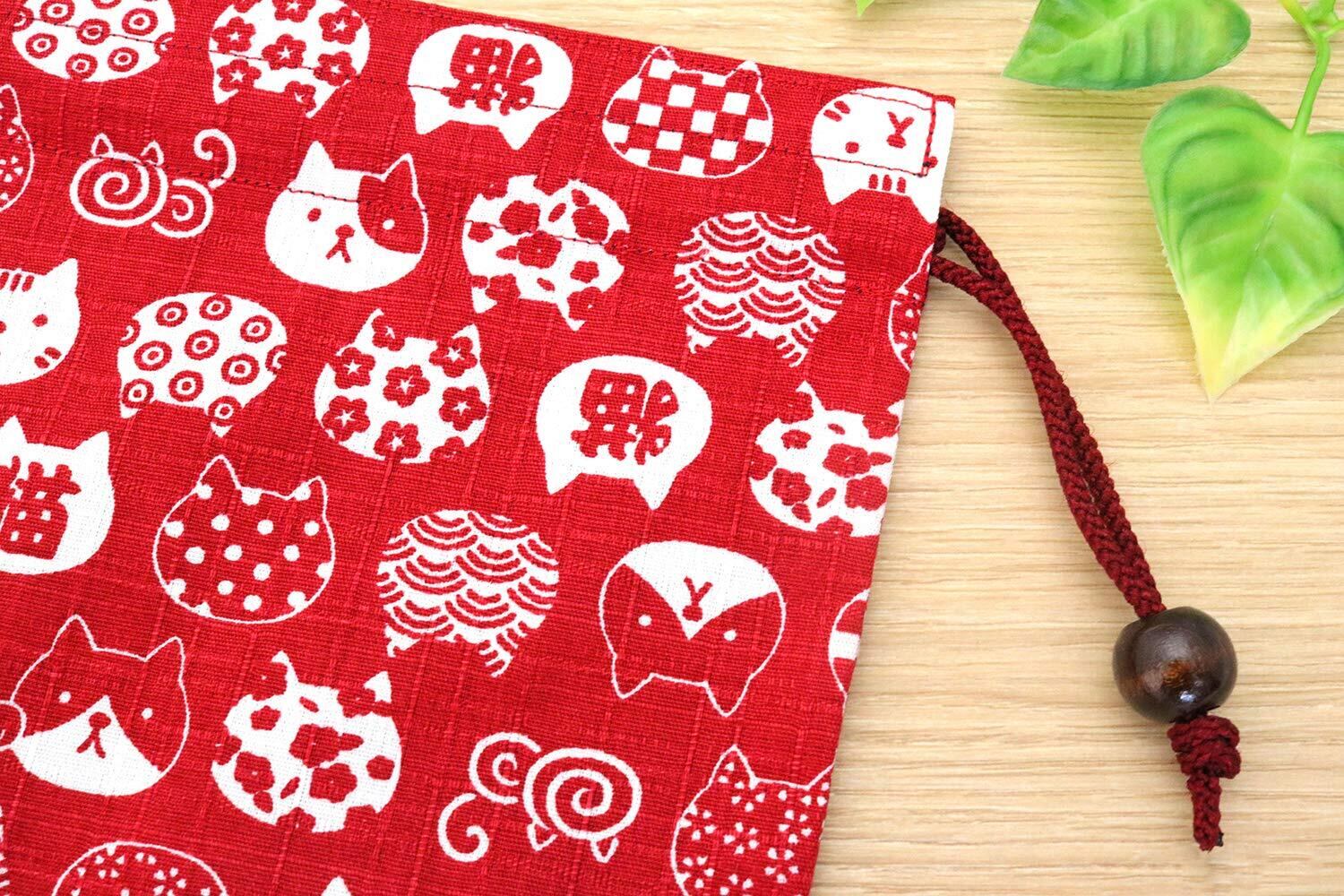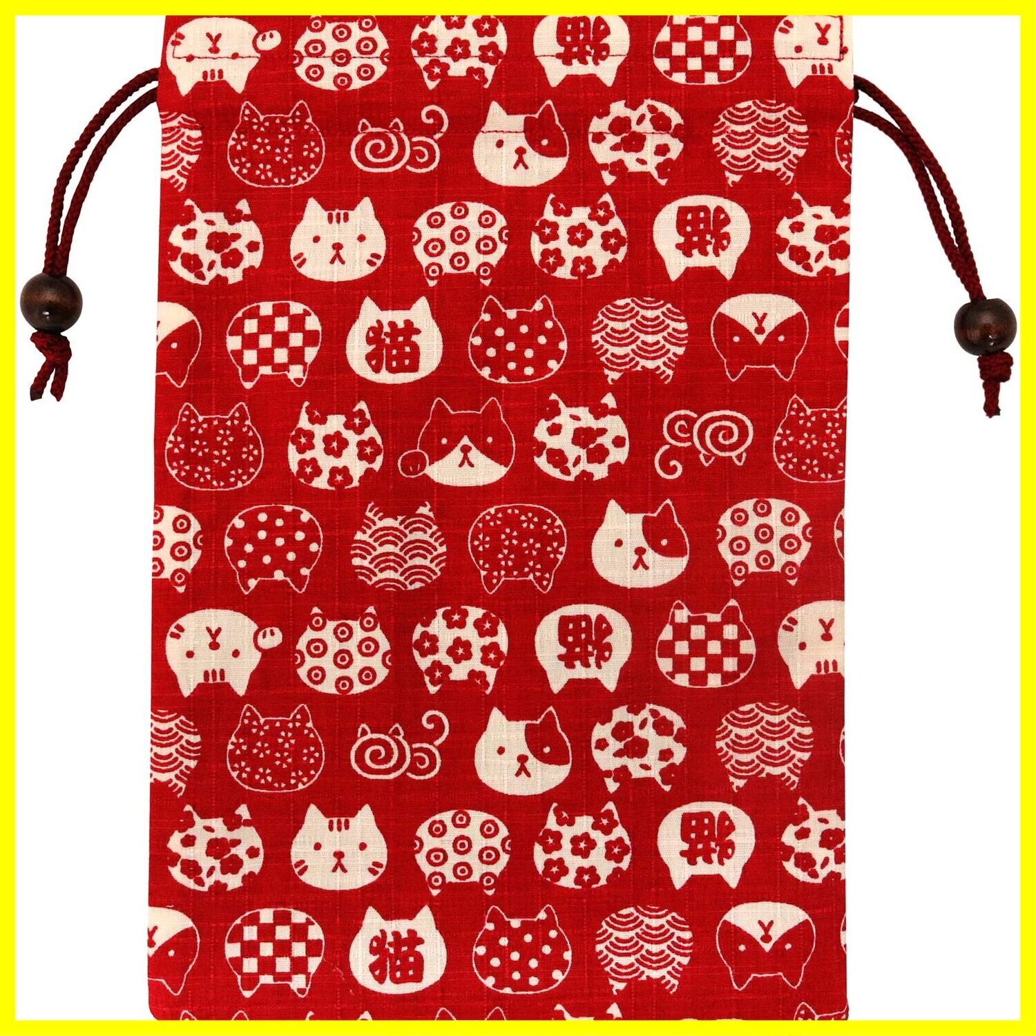 京佑 御朱印帳 ご朱印帳 朱印帳 巾着 袋 入れ 猫 日本製 和柄 にゃんこもん 赤 18×26.5cm