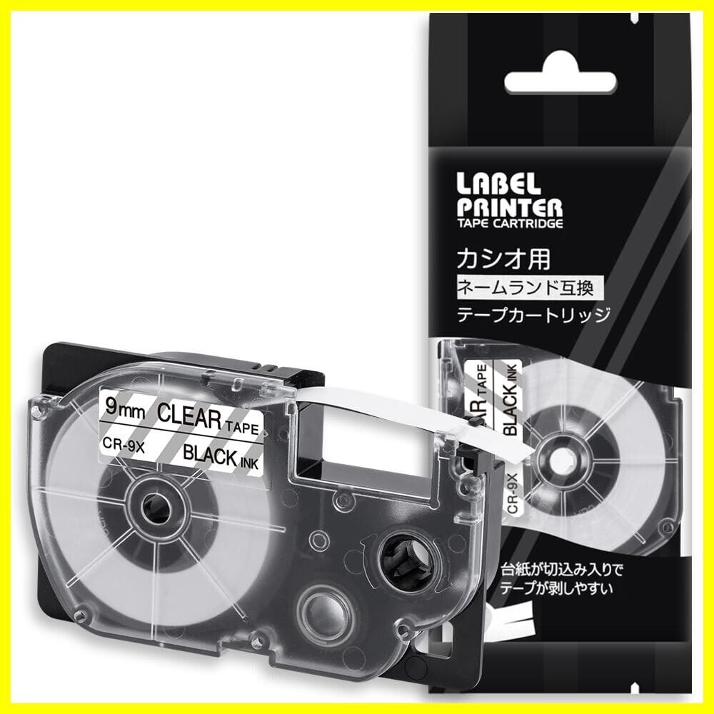 1個 9mm 透明地黒文字 CR-9X テープカートリッジ と互換性のある カシオ CASIO ネームランド NAME LAND テープ (XR-9X) ラベルライター用 Asprinte