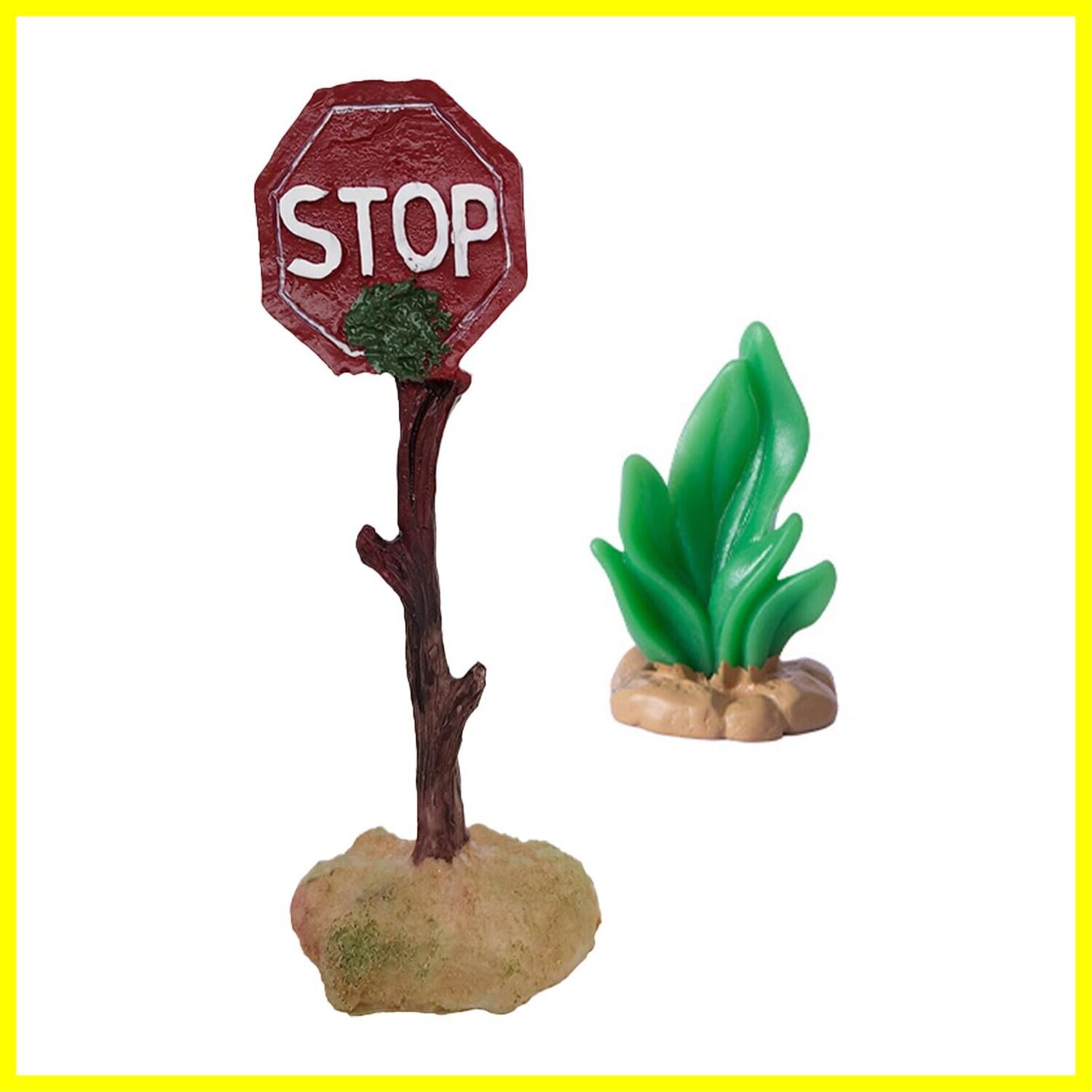 【villageriver】水槽 オブジェ オーナメント 置物 飾り アクセサリー インテリア アクアリウム (2, STOP標識&こんぶ)