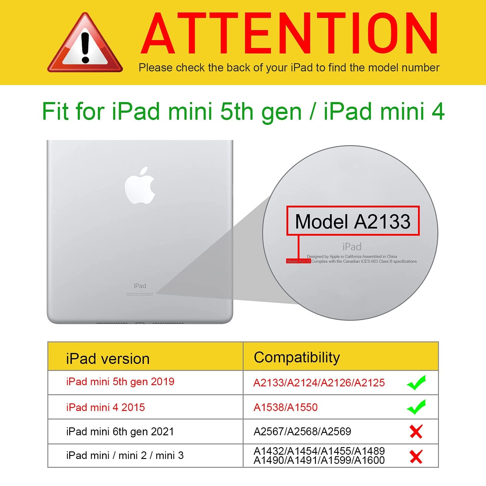 【対応機種】 iPad Mini 5 (第5世代) 7.9インチ 2019(モデル番号:A2133/A2124/A2126/A2125)、iPad mini 4 2015 (モデル番号:A1538/A1550) 専用スマートケース、カバー。 (ご注意:iPadの他のモデルには対応していません、ご注文の際に、お手元機種の背面にあるモデル番号を確認をお願い致します。)