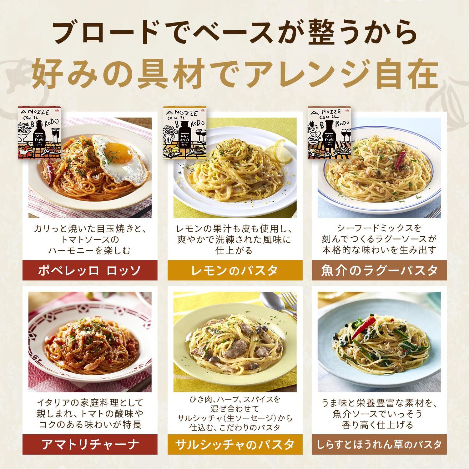 香味野菜などで作るイタリアの基本だし「ブロード」が主役のパスタ用調味料です。