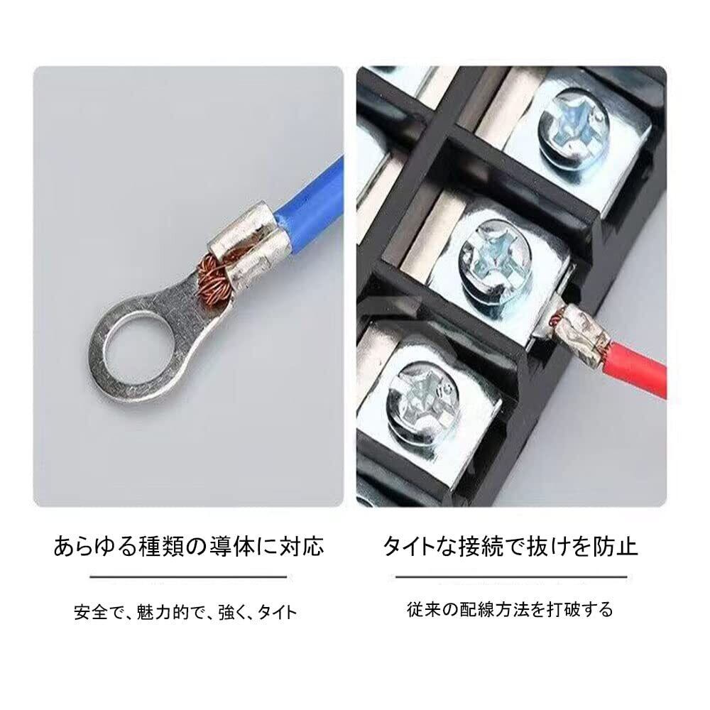 4.【使用方法】①一端が剥がされている、②ターミナルに入れて修正、③ペンチを自動的に跳ね返るまで押します、④完全なターミナル