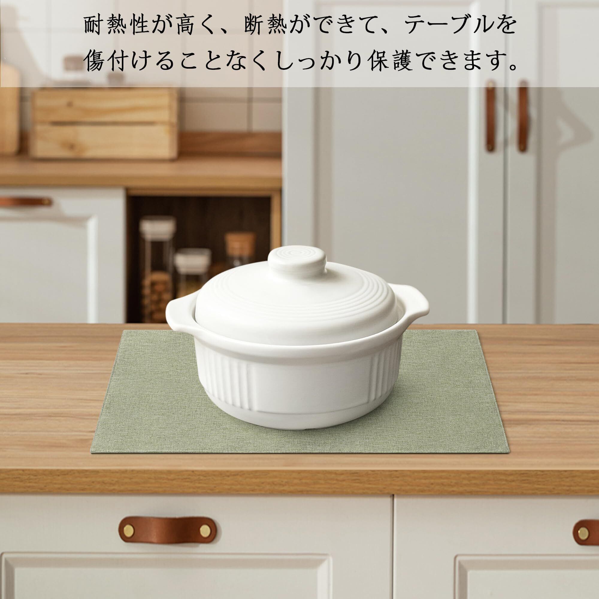 【柔らかい布製素材】丈夫で乾きも早くしわになりにくいランチョンマットです。柔らかいため使わないときは折りたたんだり丸めたりして、コンパクトに収納可能です。環境に優しく、耐熱性が高く、断熱ができて、テーブルを傷付けることなくしっかり保護できます。