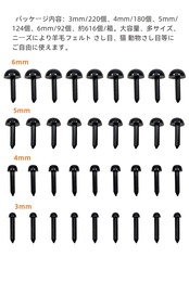 ✿【パッケージ内容】3mm/220個、4mm/180個、5mm/124個、6mm/92個、約616個/箱。大容量、多サイズ、ニーズにより羊毛フェルト さし目、猫 動物さし目等にご自由に使えます。※数量は重量で測定され、少し誤差がありましたら、ぜひご理解いただきます。