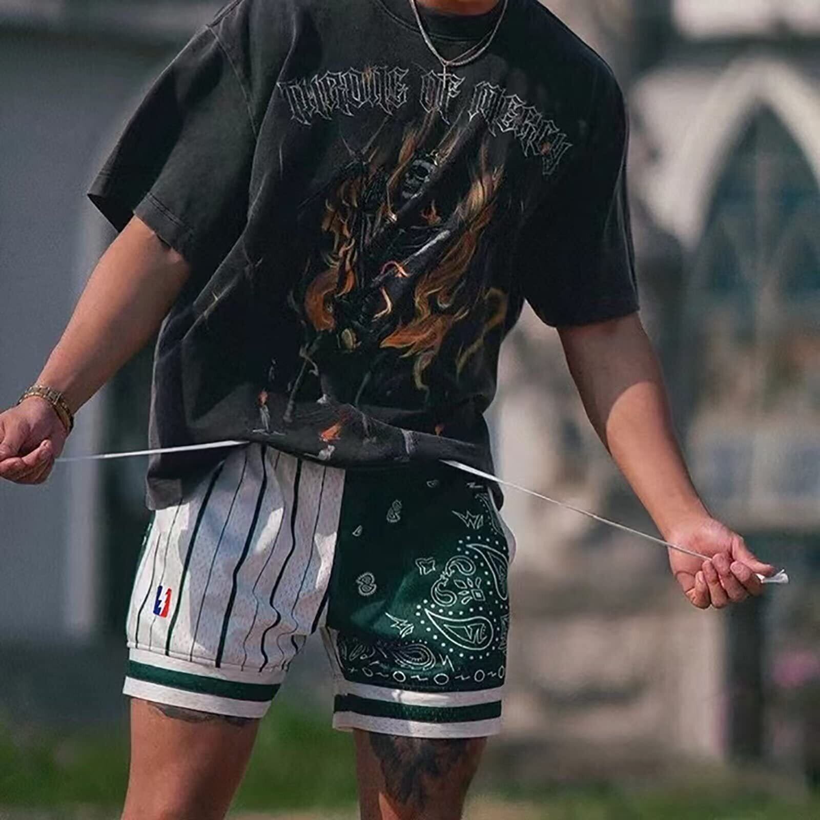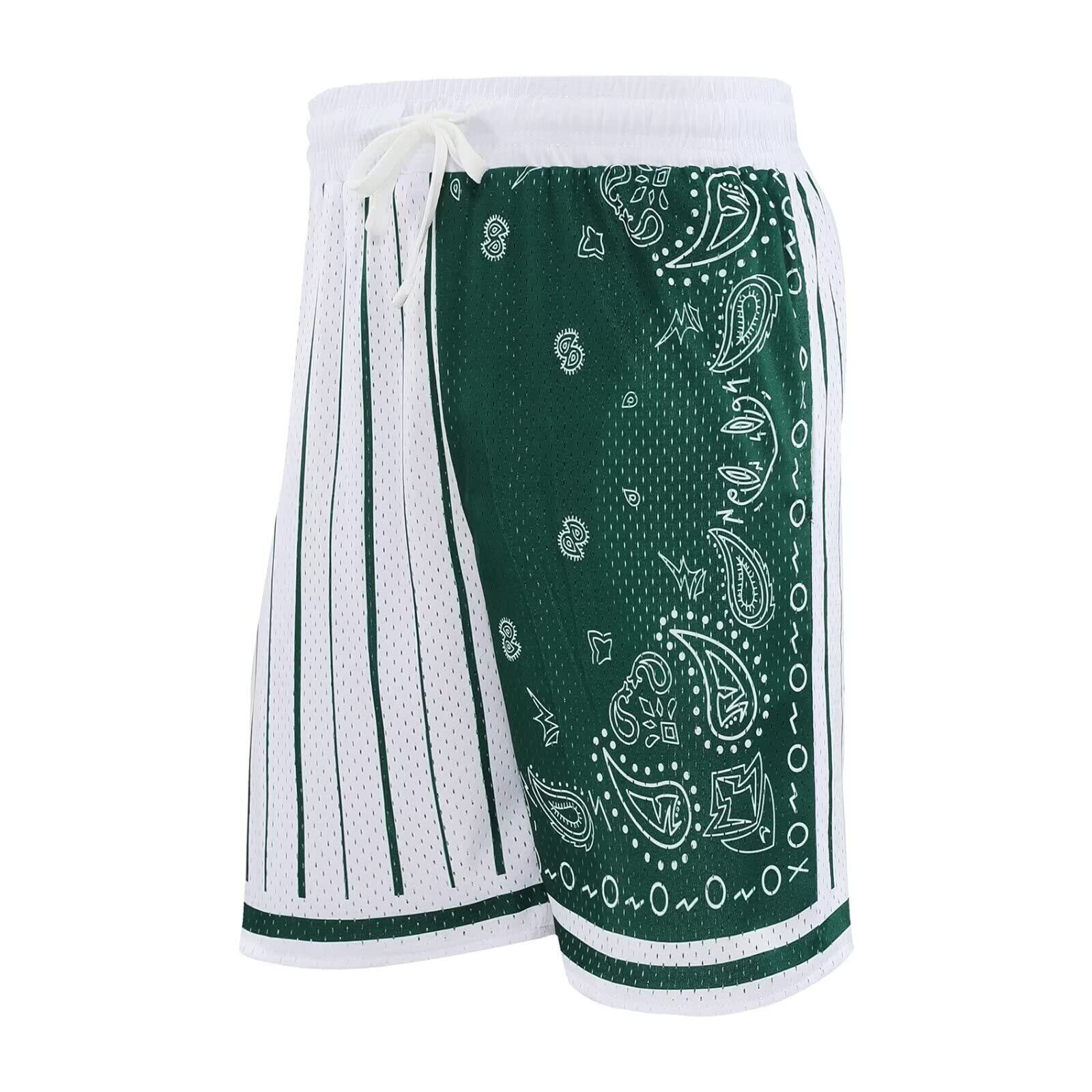[OROLN] バスケットパンツ メンズ スポーツ アメリカン短パン ペイズリー柄 ウェア ランニング トレーニング ショートパンツ ポケット付き ウエスト 調整可能 速乾 通気