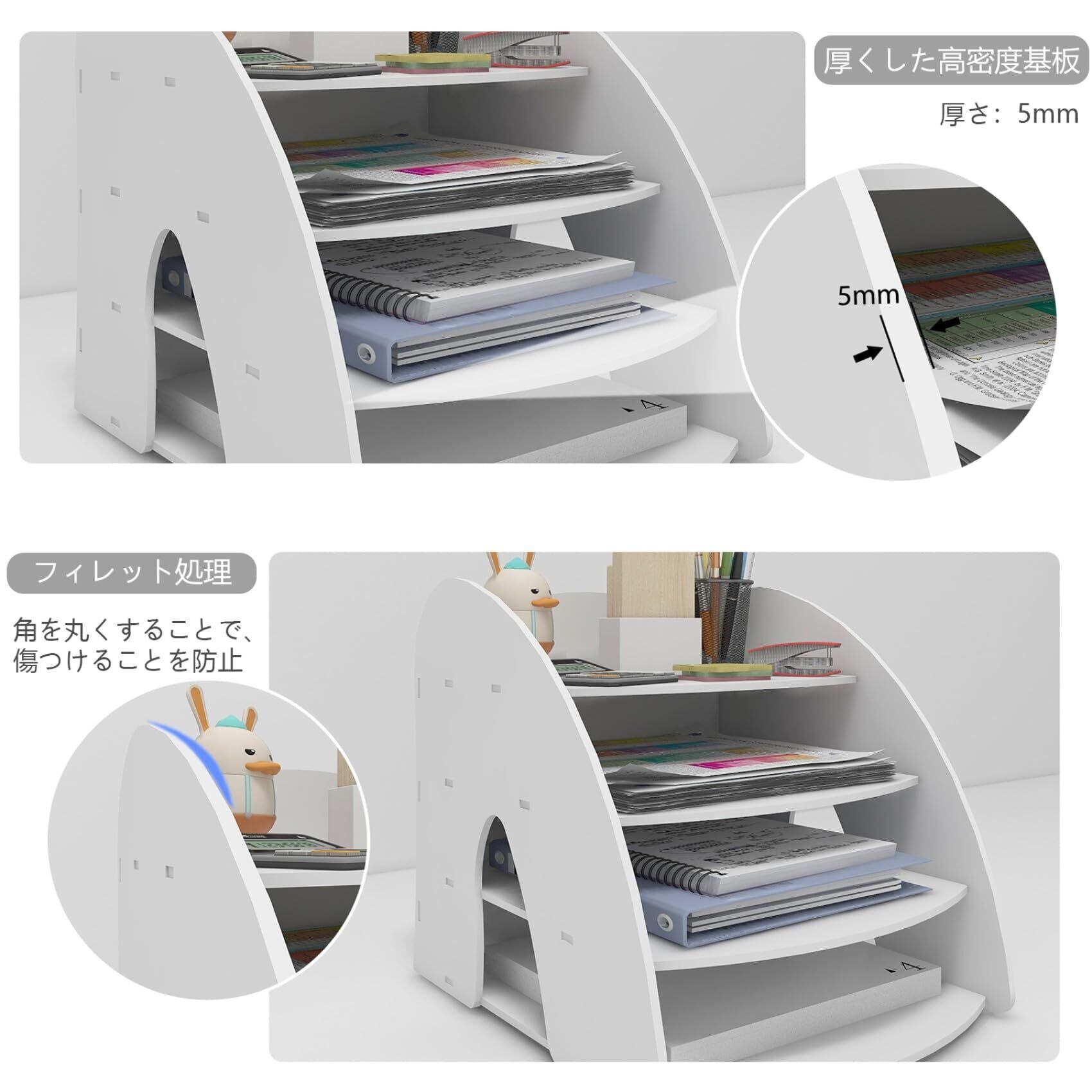 【細部にこだわり】机上書類整理ラックの棚板はアーク凹みデザインを採用しており、ファイルの取り出しが便利になります。中空構造で、書類をより識別しやすくするだけでなく、通気性を確保し、湿気から保護することもできます。