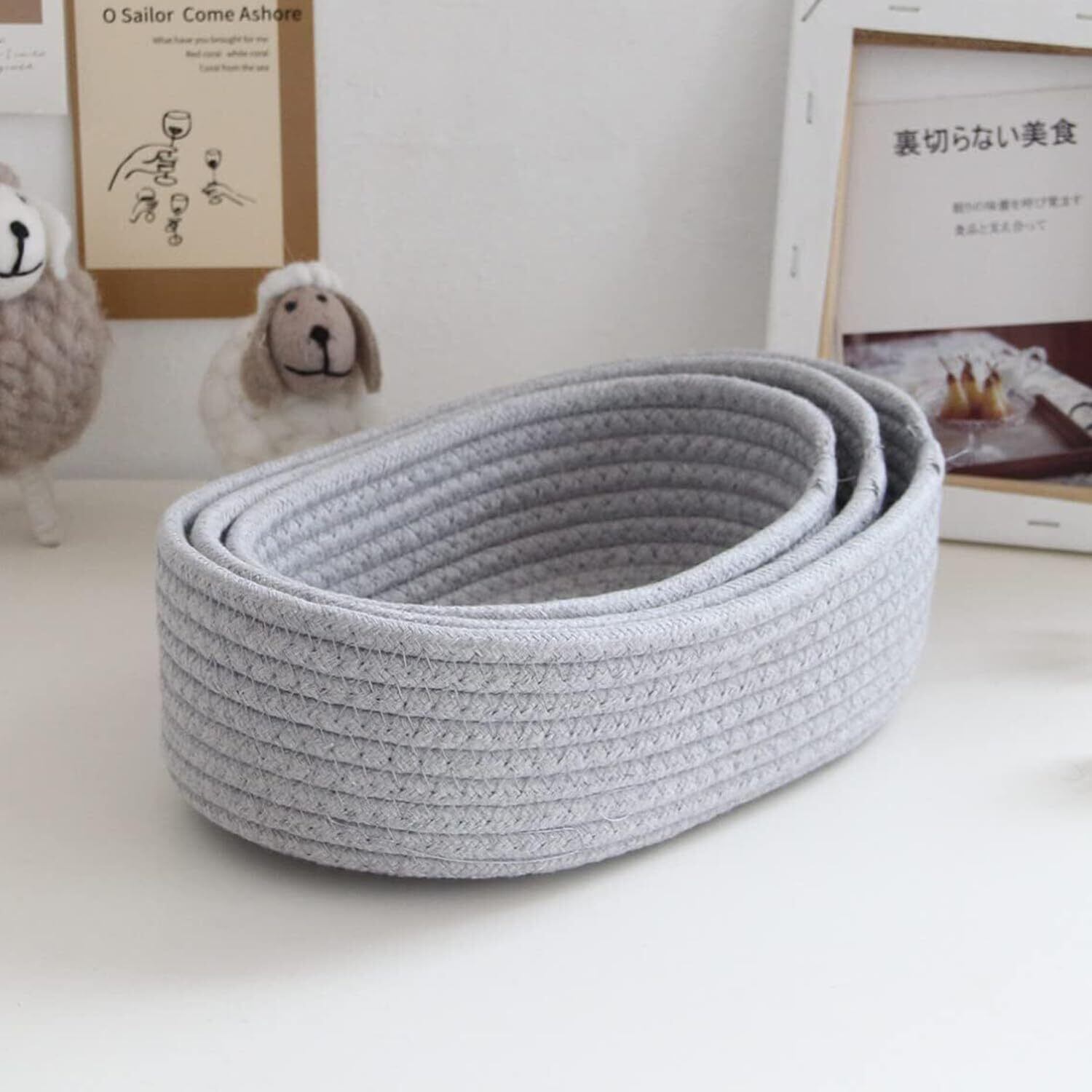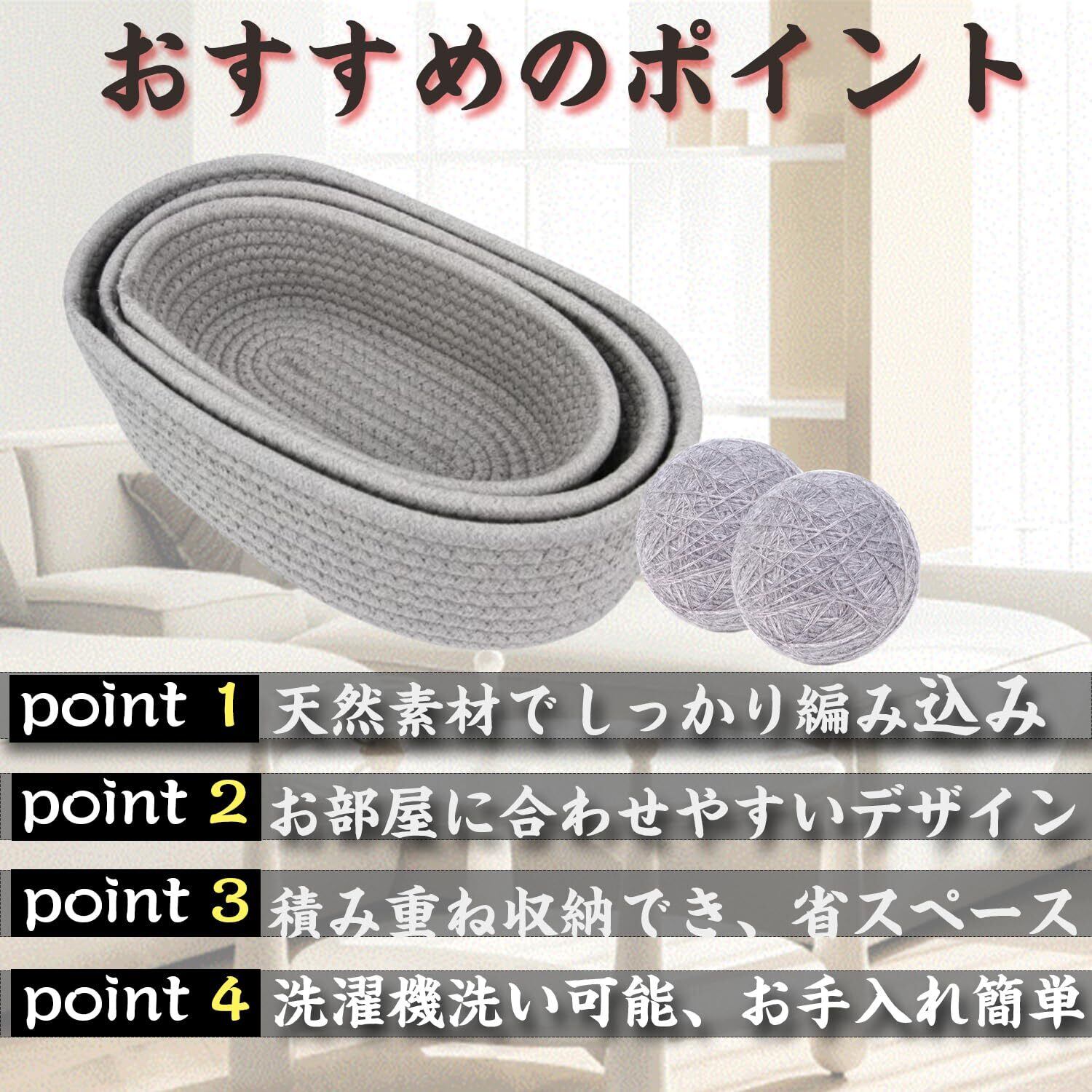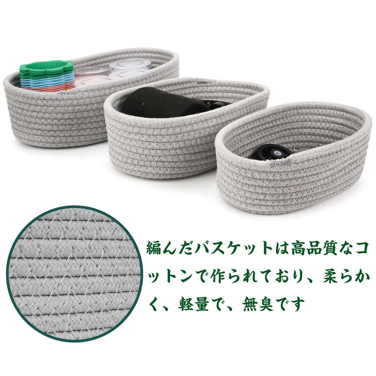 Vivi Bakie 収納バスケット 3点セット コットンロープ 積み重ね 編み込み バスケット 織り 収納ボックス 小物 おもちゃ かご 省スペース (グレー)