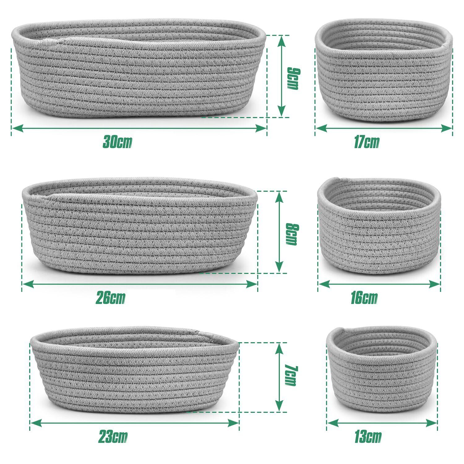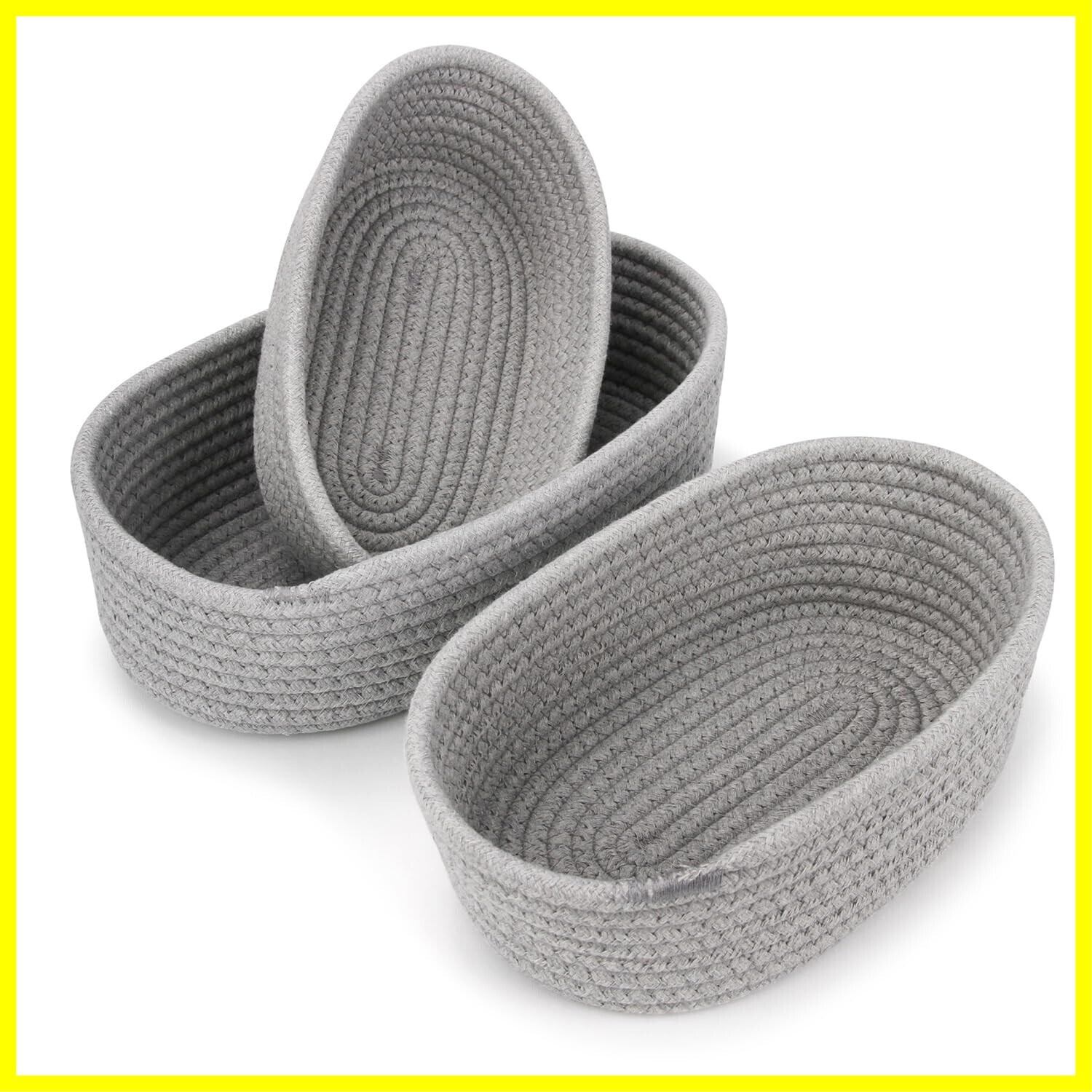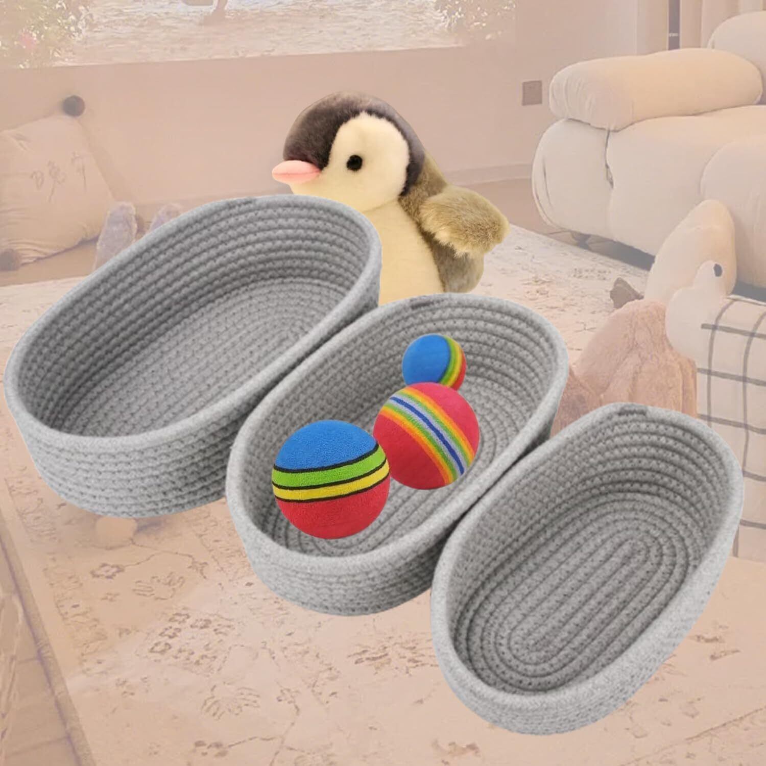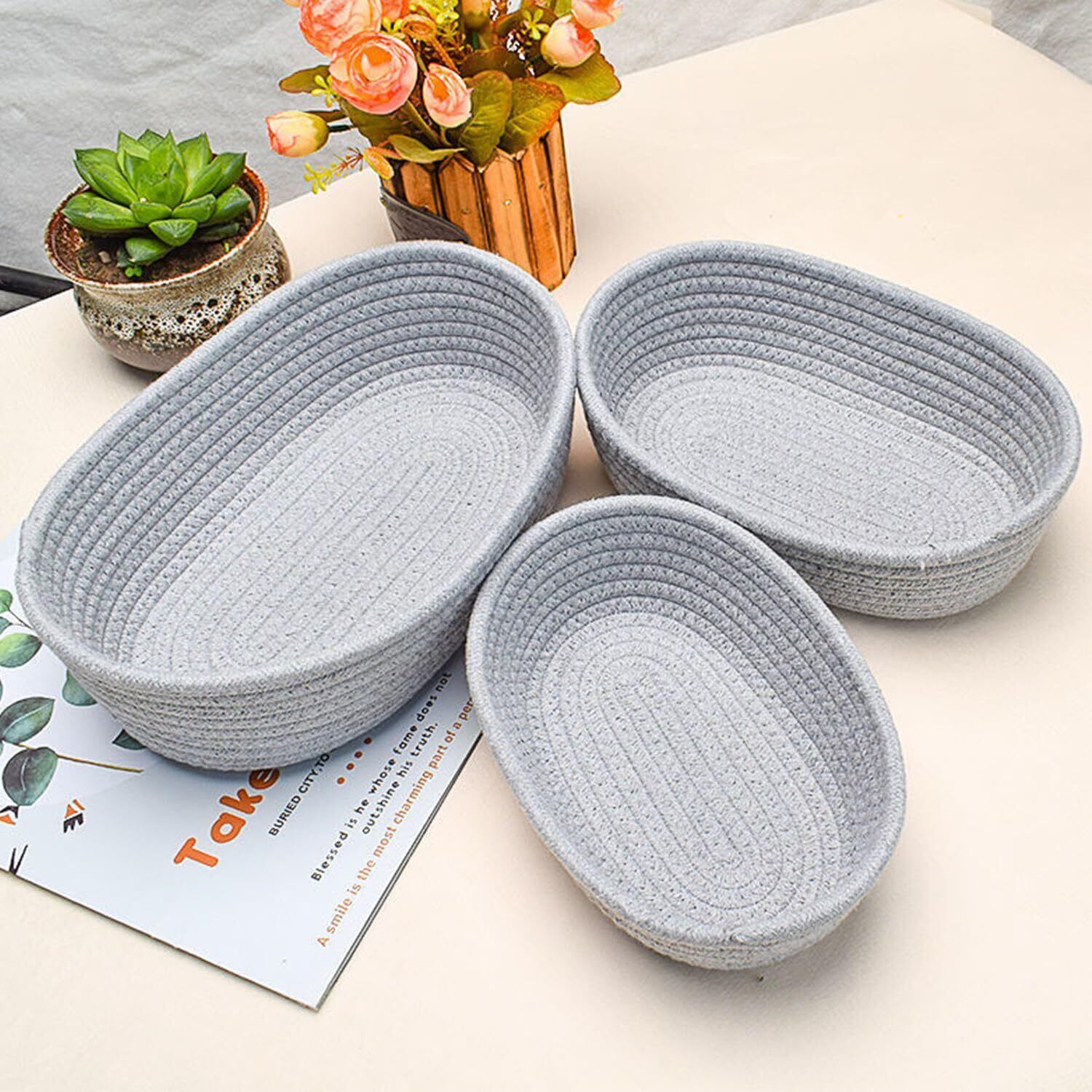Vivi Bakie 収納バスケット 3点セット コットンロープ 積み重ね 編み込み バスケット 織り 収納ボックス 小物 おもちゃ かご 省スペース (グレー)
