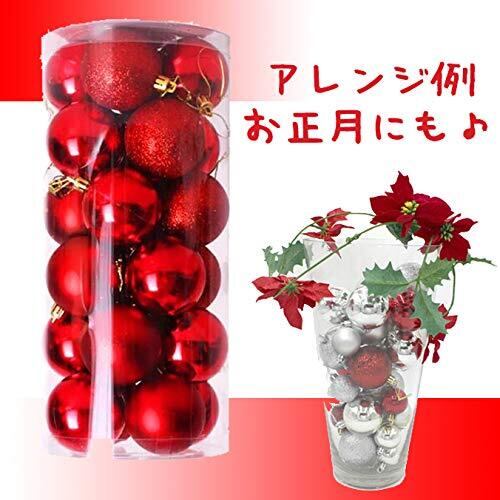 amaletPlay クリスマス 飾り ボール オーナメント 24個 球 玉 Xmas 装飾 アレンジ デコレーション 40mm 赤 (4cm, レッド)