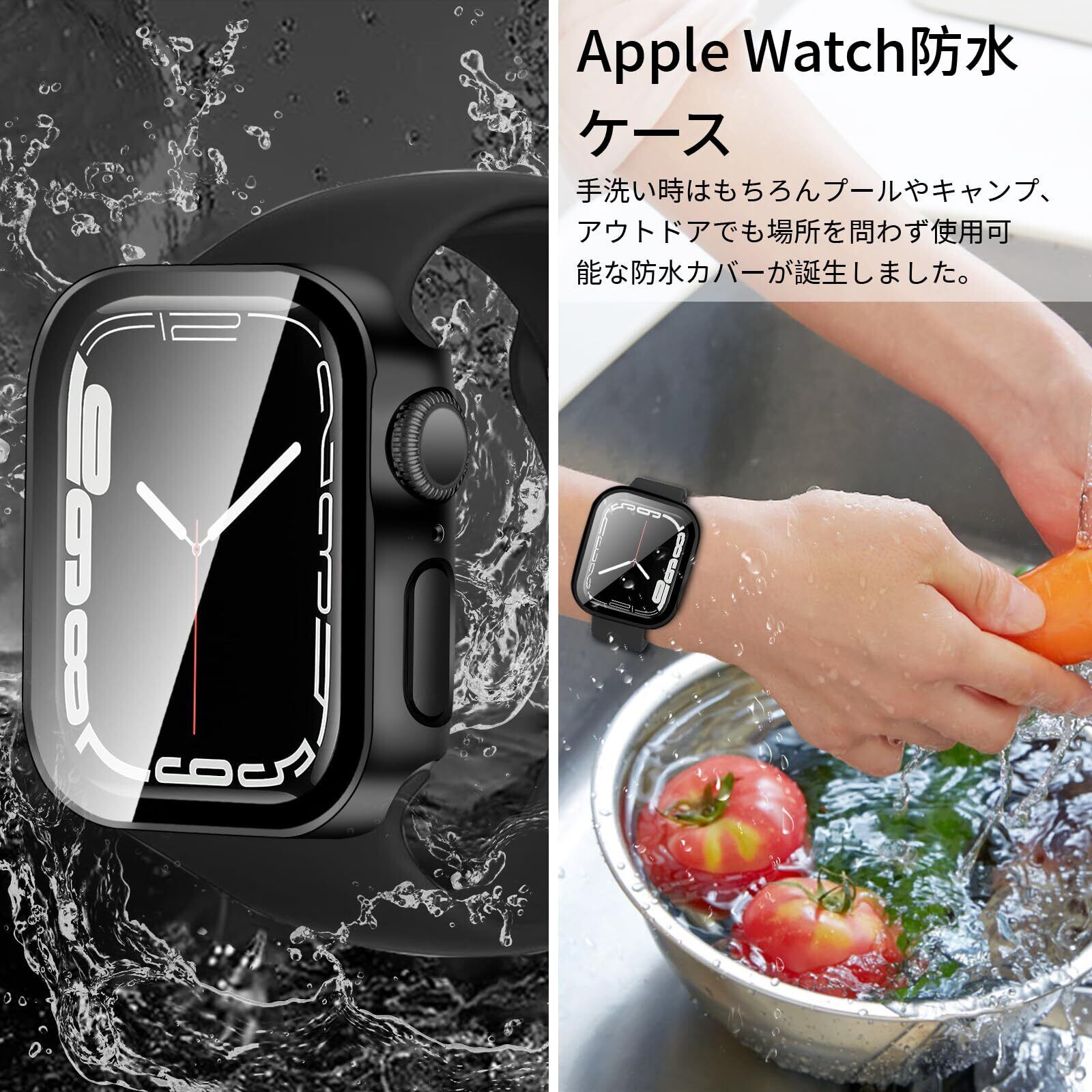 YUGYUG 対応 Apple Watch ケース Series SE3/SE2/SE/6/5/4 Apple Watch カバー PC素材 IP68 防水 3D直角エッジデザイン アップルウォッチ ケース ガラスフィルム 一体型 日本旭硝子材 二重構造 アップルウォッチ カバー 全面保護 強化ガラス キズ防止(40mm,ブラック)