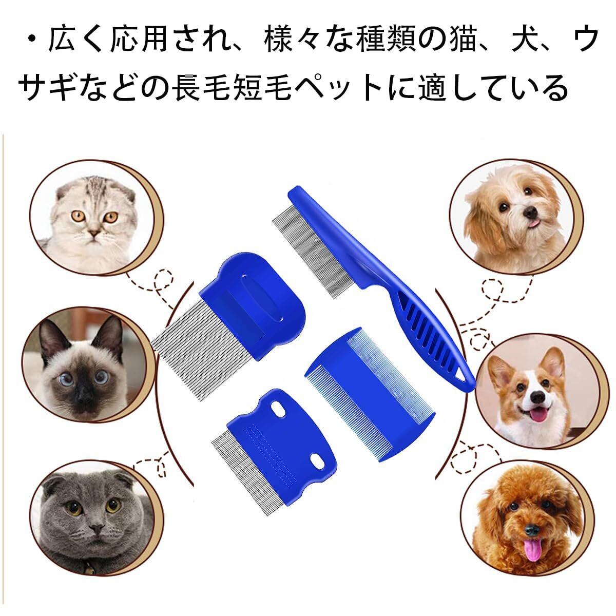 ペット コーム 4本セット 犬 猫 くし クシ ノミ取り櫛 多機能 美容ブラシ 犬 ブラシ 猫 ブラシ ステンレス製 肌にやさしい 毛取りコーム 長毛短毛兼用
