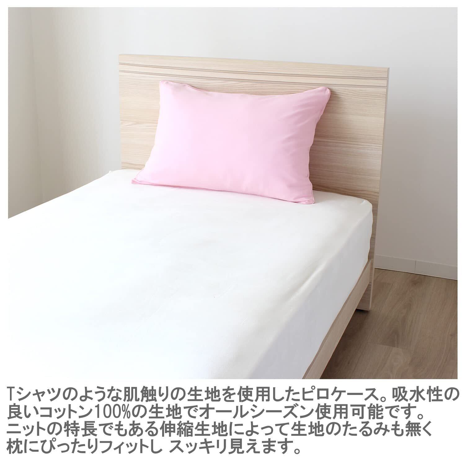 Tシャツのようなやわらかい肌触りのニット生地を使用したピロケース。吸水性の良い綿100%の生地でオールシーズン使用可能です。
