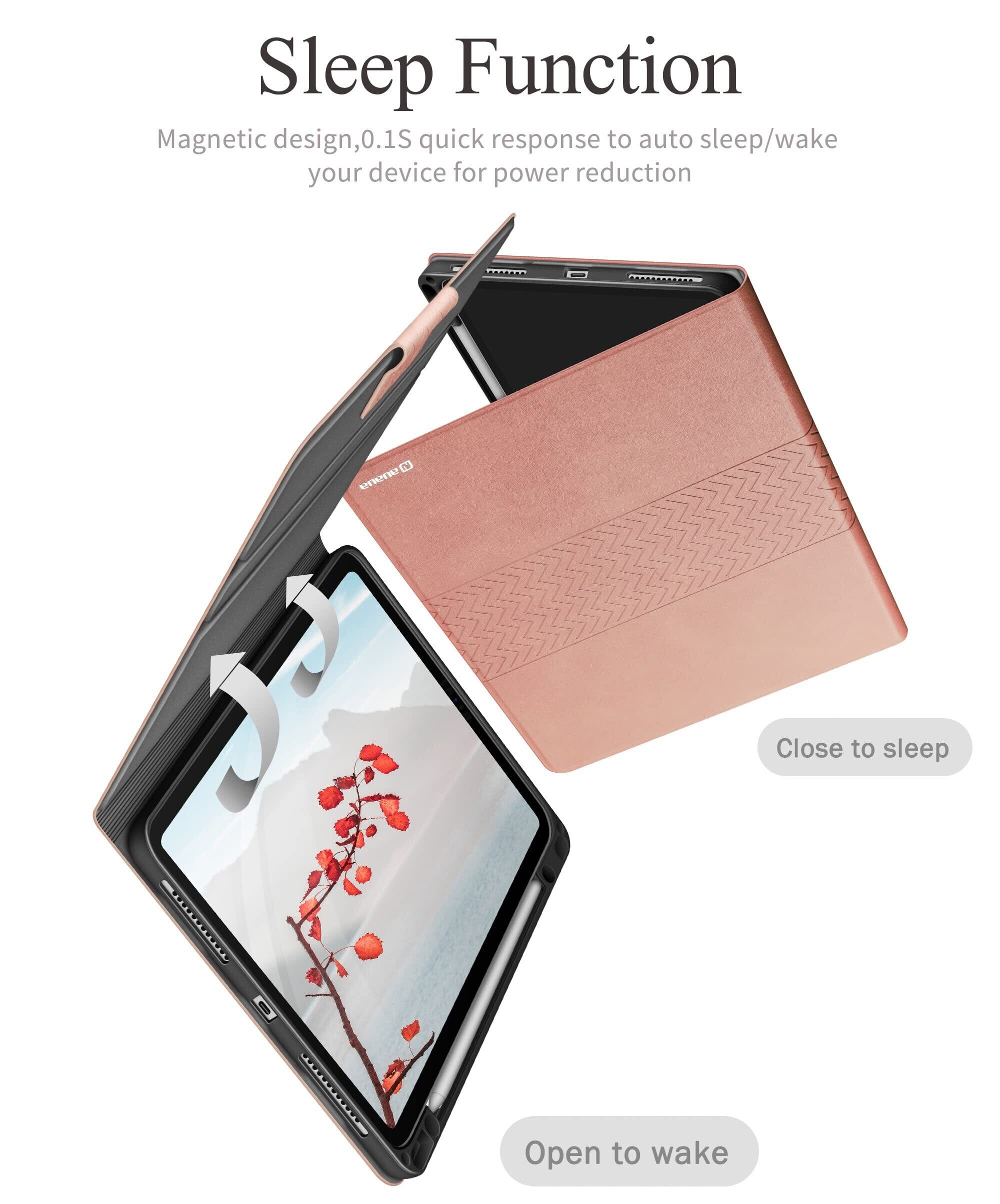 auaua iPad Pro 12.9インチ ケース 2022/2021/2020/2018 ペン収納 PUレザー 手帳型 ひび割れ防止 耐衝撃 オートスリープ&スタンド機能付き 全面保護 iPad Pro 12.9 第6/5/4/3世代兼用 (ピンク)