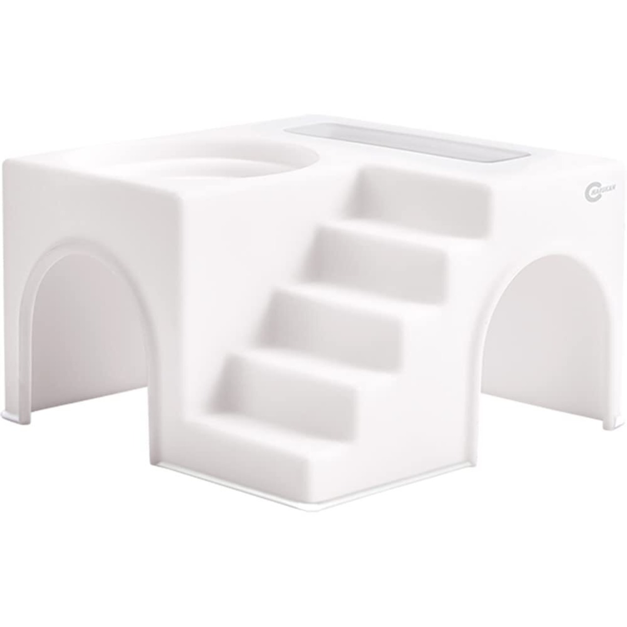 2階部分に食器が置ける、階段付きのハムスターハウスです。天面の透明窓から、中の様子を覗くことができます。