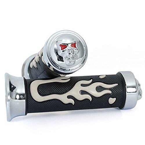 Szmsmy ガイコツ バイク グリップ 25mm メッキ 左右セット スカル バーエンド