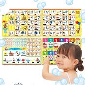 Gakkenおふろでお勉強シリーズ「おさるのジョージ おふろでもじ かず とけい」は、黒い丸にお湯をつけると文字やイラストが現れる感温インク付き!もじ・かず・とけいが楽しく学べます。おふろの壁に水をつけてシートを貼ったり、湯船に浮かべたりして、表を見ながら声に出して物やキャラクターの名前や数字を言ってみましょう。物の名前など、黒い丸で隠れています。お湯をつけると、名前が出てきます。しりとりをしたり数をかぞえたりして親子で楽しくコミュニケーションをとりながら学べるおふろシートです。(感温インクは約32℃以上で色が消え始め、約25℃以下で黒い色が着色します)