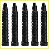 【パッケージ】グリップバンド5本入り、ブラック。長さ約110cm、幅約2.5cm、厚さ約0.7mm。