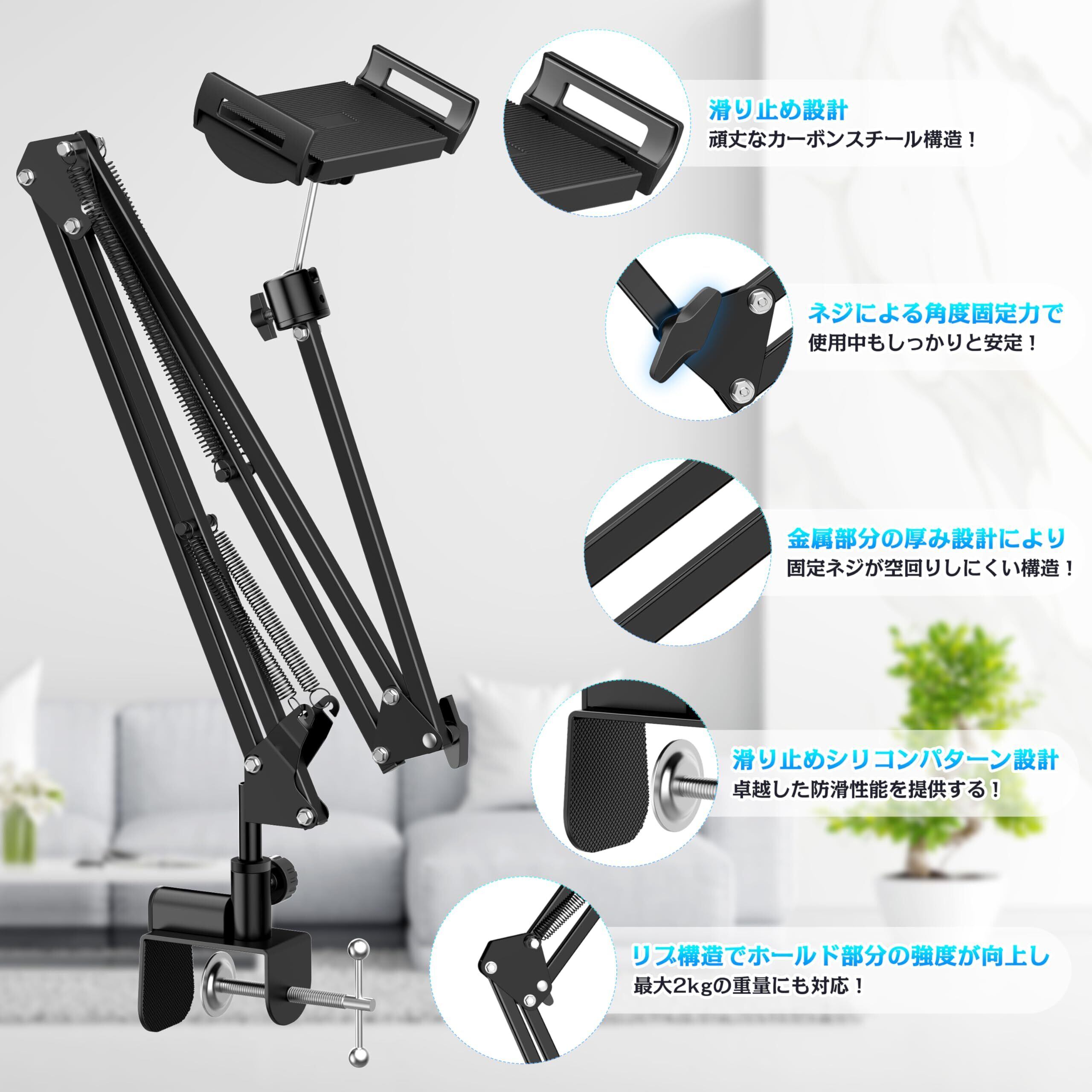 ipad スタンド アーム タブレット スタンド 寝ながら ベッド用 スマホスタンド ベッドサイド 360回転 スマホ スタンド/ホルダー アーム ケーブル固定具付き iPad iPad Pro iPhone Android Switch Kindle surface 多機種対応 日本語取扱説明書