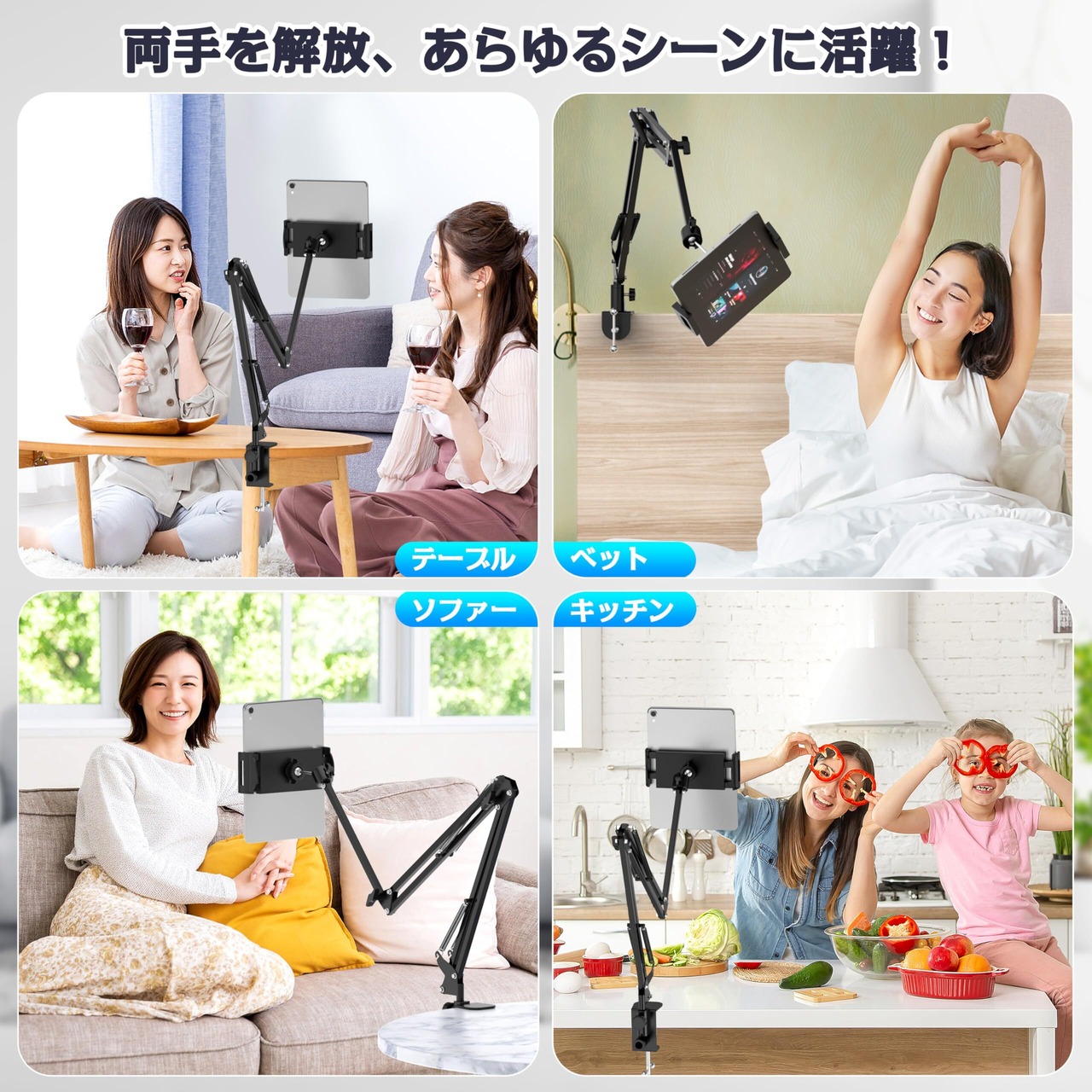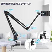 【四つの可動関節で自由に調整可能】四つの可動関節により、角度と高さを自由に調整できるため、最も快適な視角を実現します。360度回転可能で、スマホやタブレットを使った動画視聴、ウェブ会議、e-Bookの読書、絵を描く際の参考資料としても理想的です。