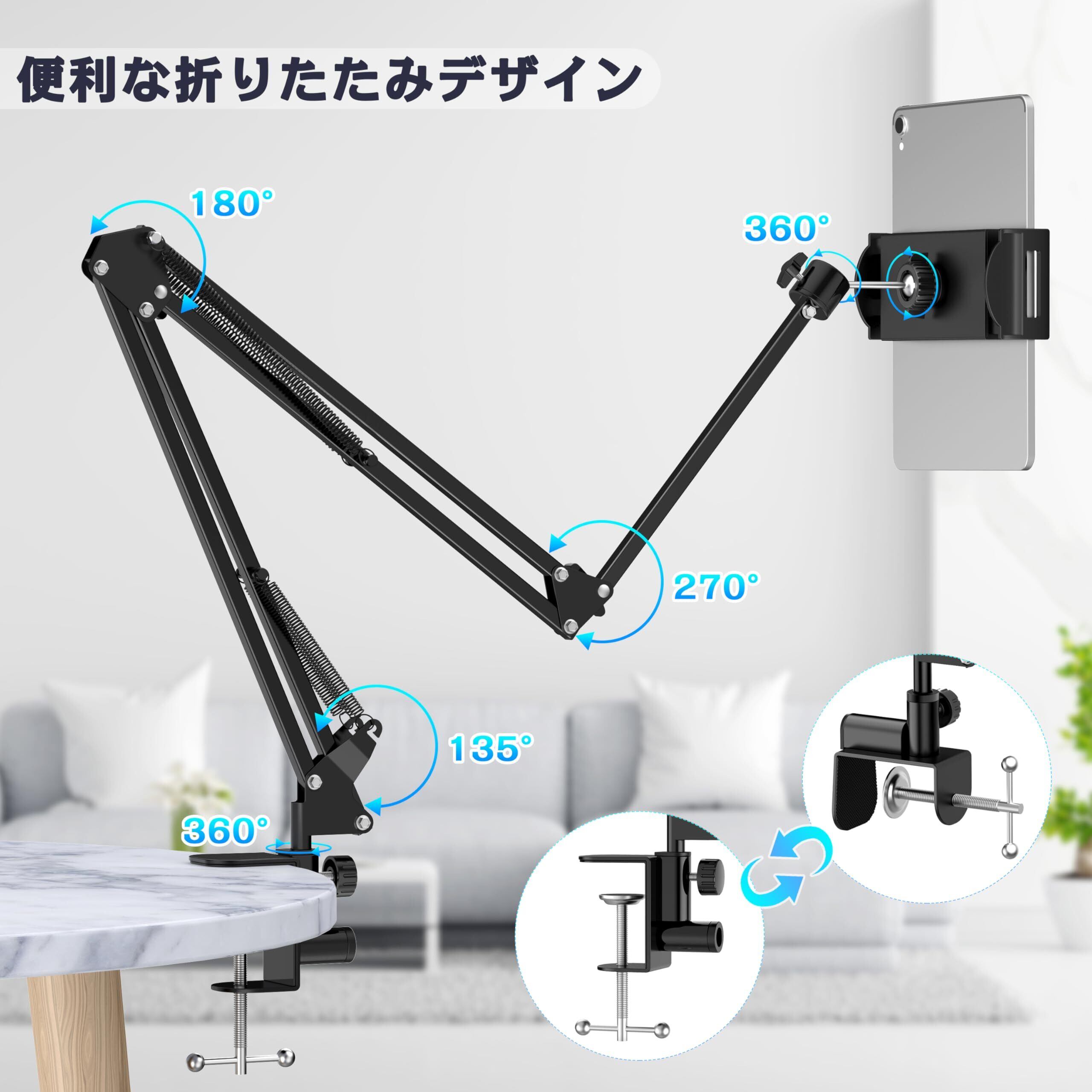 タブレット スタンド 寝ながら ベッド用 スマホスタンド ベッドサイド 360回転 スマホ スタンド/ホルダー アーム ケーブル固定具付き iPad iPad Pro iPhone Android Switch Kindle surface 多機種対応 日本語取扱説明書