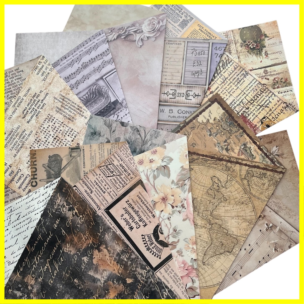 A4サイズのオリジナルデザインペーパー です。両面印刷。アンティーク調の柄を集めました。両面お好きな柄をお使いください。 コピー用紙よりも厚め0.12mmの上質紙90kgを使用。 包装紙、コラージュ素材、ジャンクジャーナル、ブックカバー、台紙、工作、POP、表紙、などなど使い道自由です。 ※パソコン上の色味と現実の色味は異なる見え方がある場合がございます。