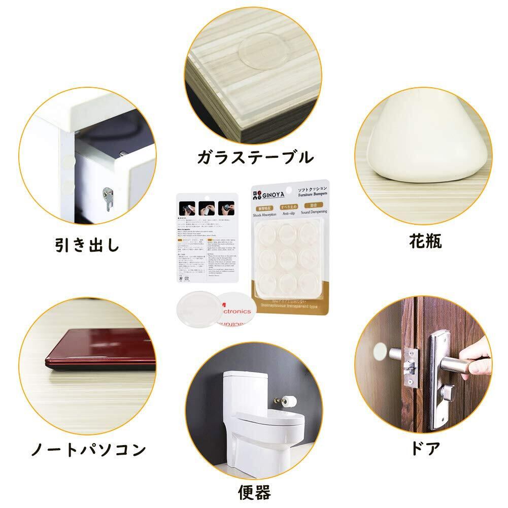 ギノヤ ソフトクッション, 9枚入り 戸当たりクッション 衝撃音・キズ防止 すべり止め用 説明書付き