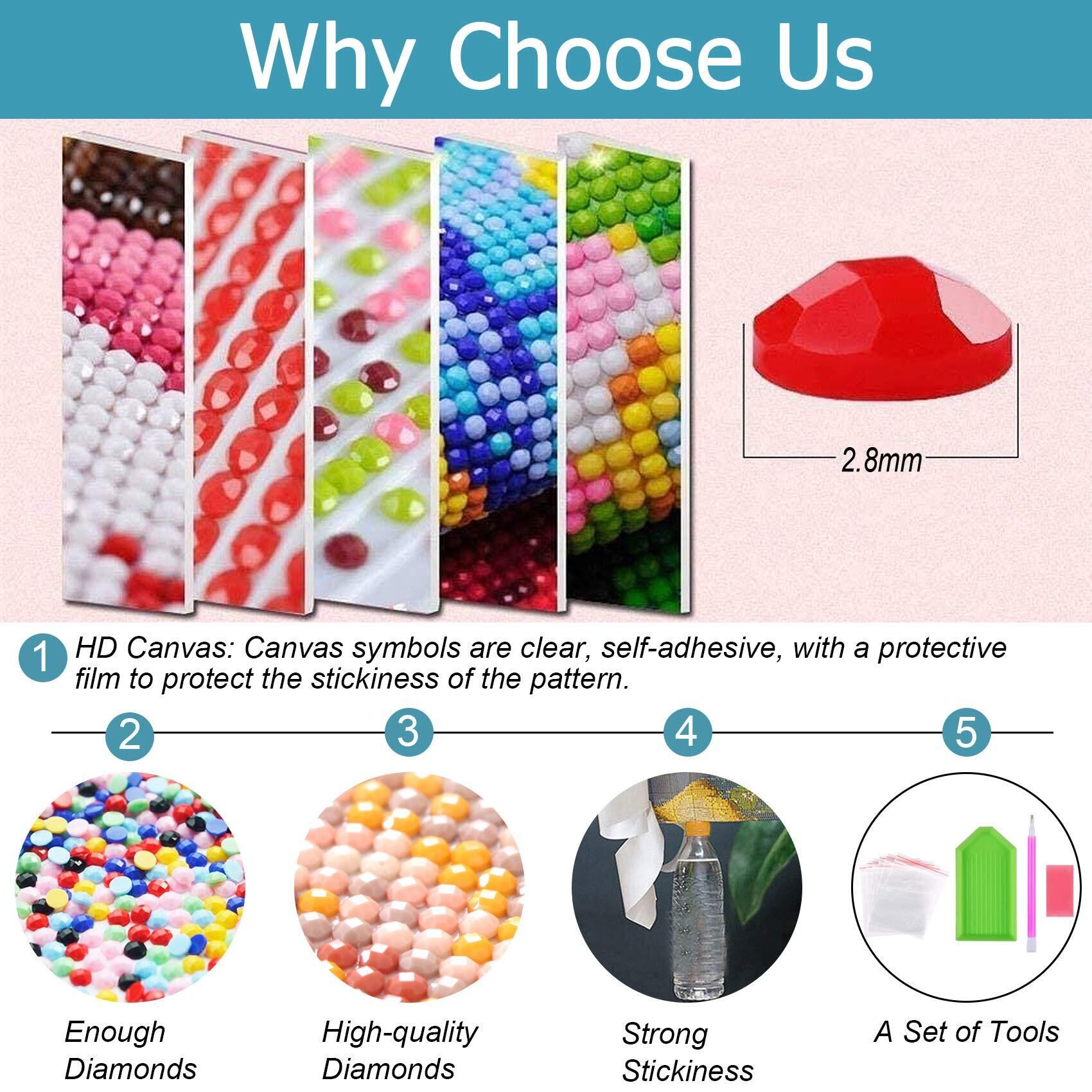 [ユニークな装飾] -5Dダイヤモンド絵画は、寝室、ダイニングルーム、バスルーム、キッチン、書斎、自宅、オフィスの装飾に非常に適しているため、これらの場所は活力に満ち、芸術的な味わいを加え、感覚を味わうことができます。浸漬。ダイヤモンドアート、人生の光を照らし、人生をより面白くします。