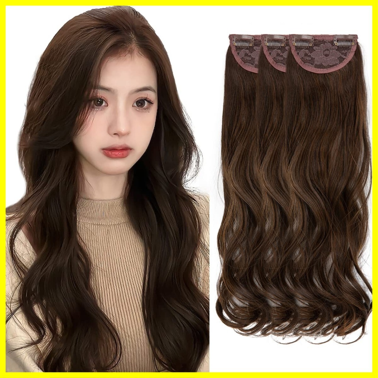 [SARLA ]エクステ ウィッグ 襟足 巻き髪 カール ロング (3枚セット) ワンタッチ つけ毛 組み合わせ自由 クリップ付け 装着簡単 ジンジャー ·ブラウン 60cm