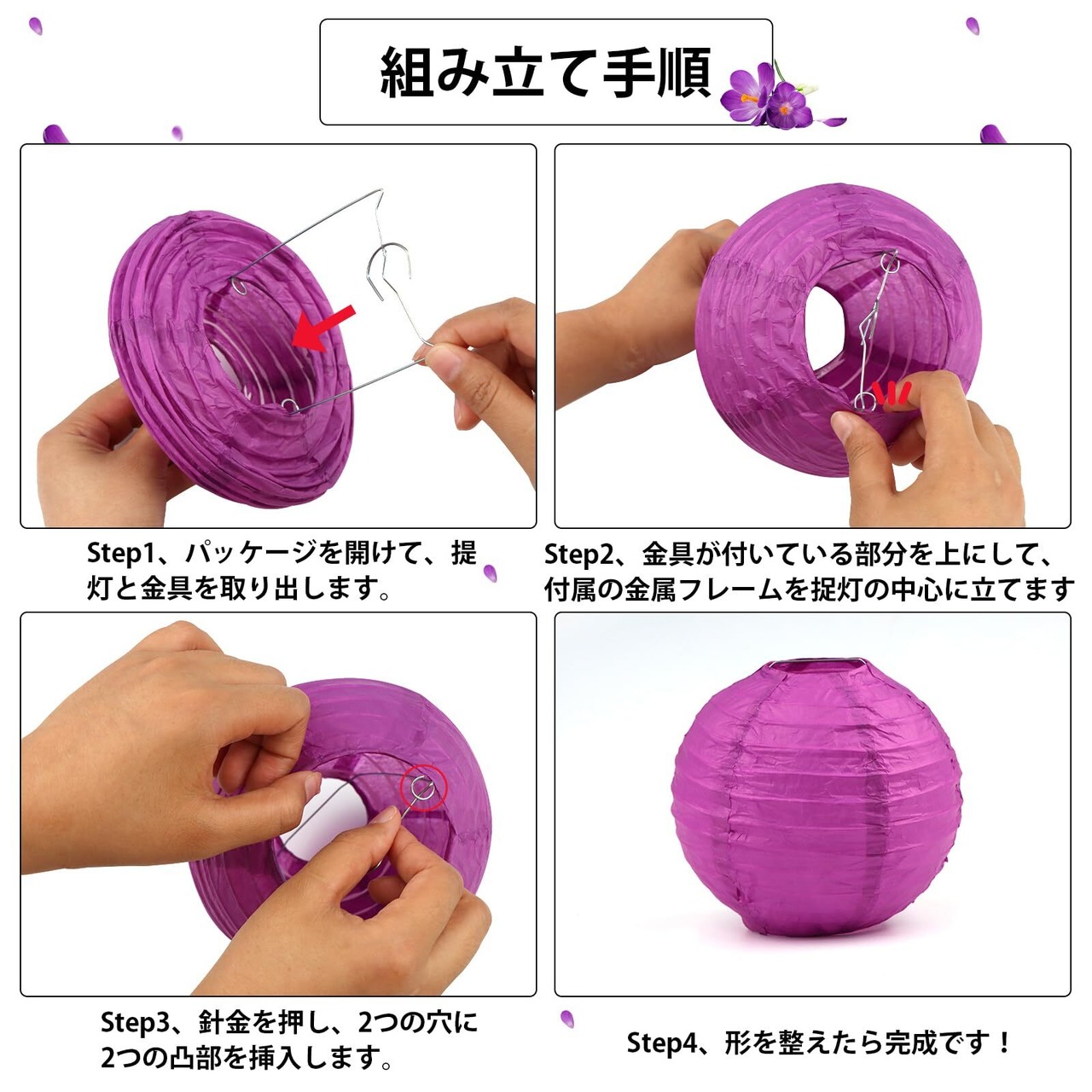 【組み立て方法】組み立て説明書があるので、取り付けは非常に簡単で、子供でも簡単に行えます。再利用可能なちょうちんは、使用しない時はコンパクトに収納でき。一枚ずつ個別梱包されているので、保管便利に、持ち運びも楽々です!