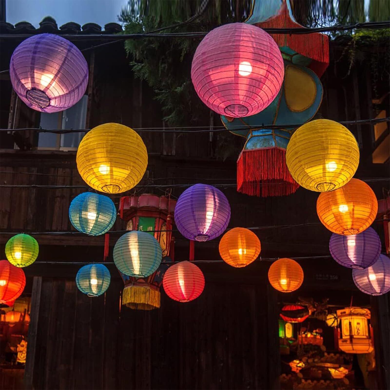 DARENYI 提灯 紙ちょうちん 30色30個セット直径15cm 紙提灯 カラフル 夏祭り/縁日/イベント/夏 飾り付け 装飾用 パーティー/お祭り/お盆/誕生日/結婚式/開業/DIY絵画/夏祭り飾り 丸型紙提灯 (マルチカラー 15cm)
