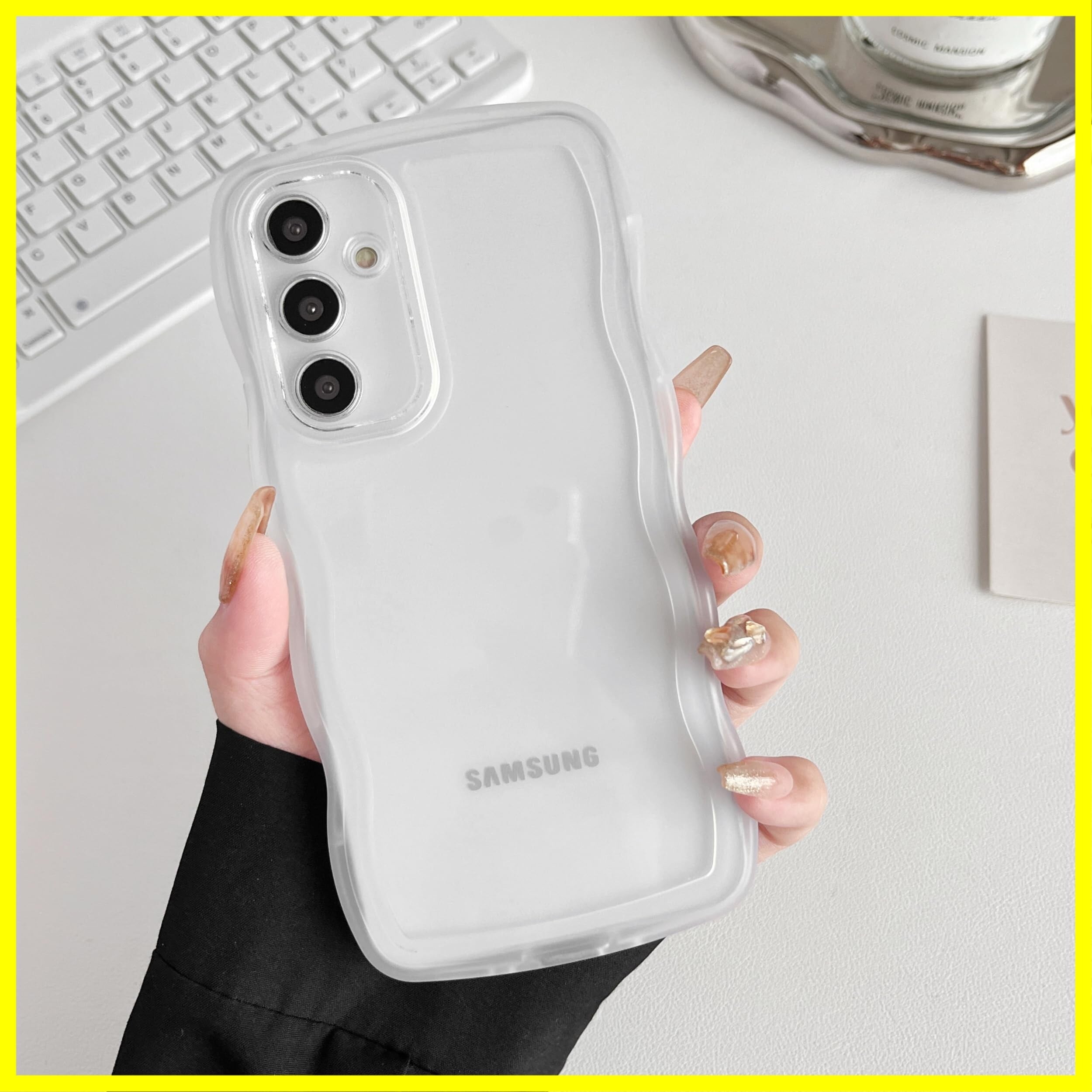 ZTOFERA Samsung Galaxy S23 FEケース用、クリア透明可愛いうねうね波状フレームおしゃれデザイン、ソフトTPU滑り止め傷防止耐衝撃性の電話カバーSamsung S23 FE 5Gケース用、白い