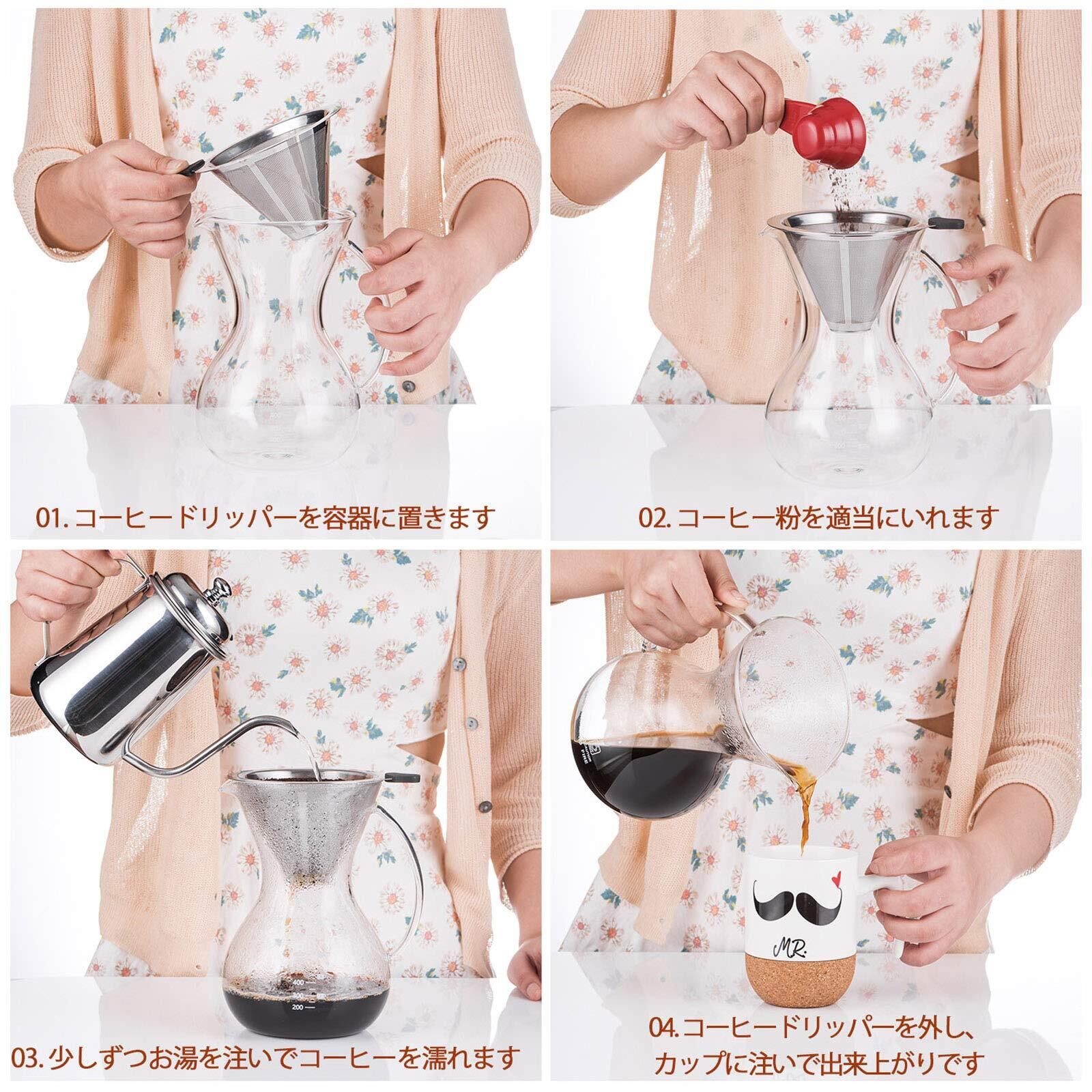 【エコ・便利】:2層の高品質ステンレスメッシュを採用、ペーパーフィルターも使用せず、繰り返し使えるので、環境にもやさしい便利なドリッパーです。半永久的に使え、エコで経済的なので、樹脂製、陶器製に比べて強度、耐熱、耐腐食性に優れています。