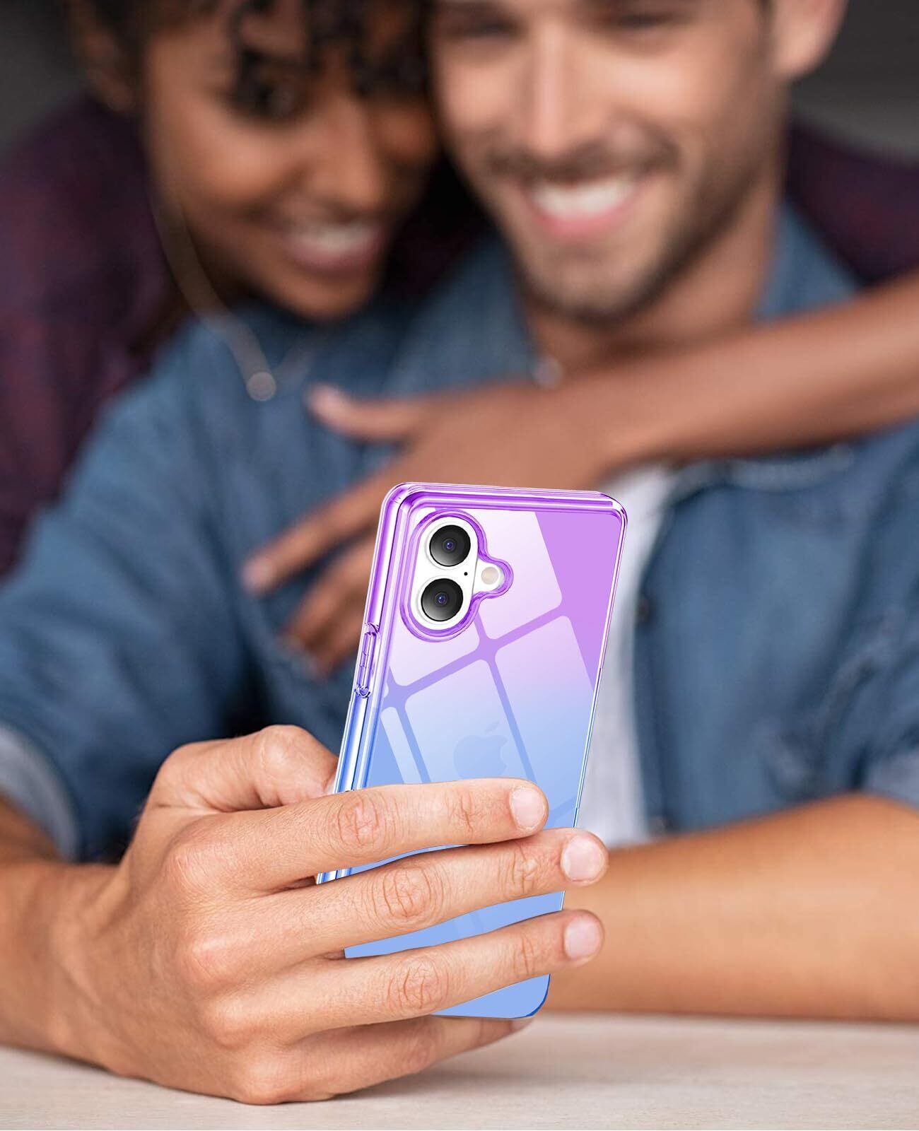 iPhone 16 Plus 用 ケース クリア 薄型 TPU 耐衝撃 アイフォン16plusケース グラデーション色 ケース 黄ばみ防止 擦り傷防止 軽量 人気 スマホケース カメラ保護 ワイヤレス充電対応 パープルブルー